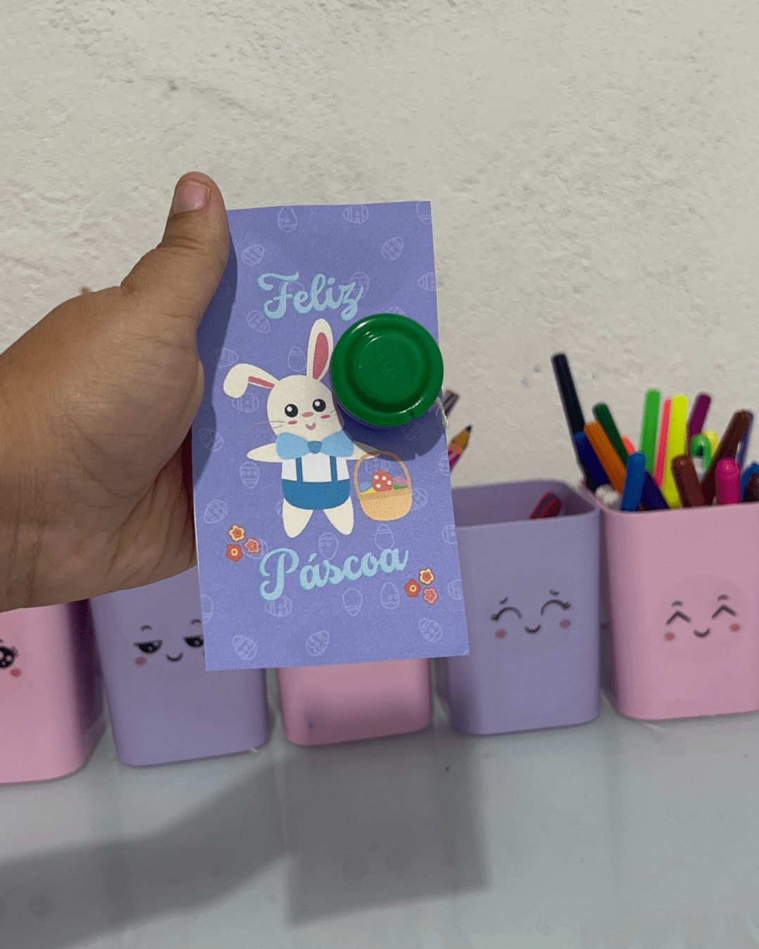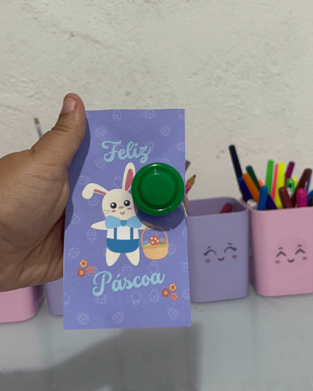 • Sugerir que as crianças escrevam o nome e uma frase simples como “Feliz Páscoa!” ou “Com carinho, [nome]”.