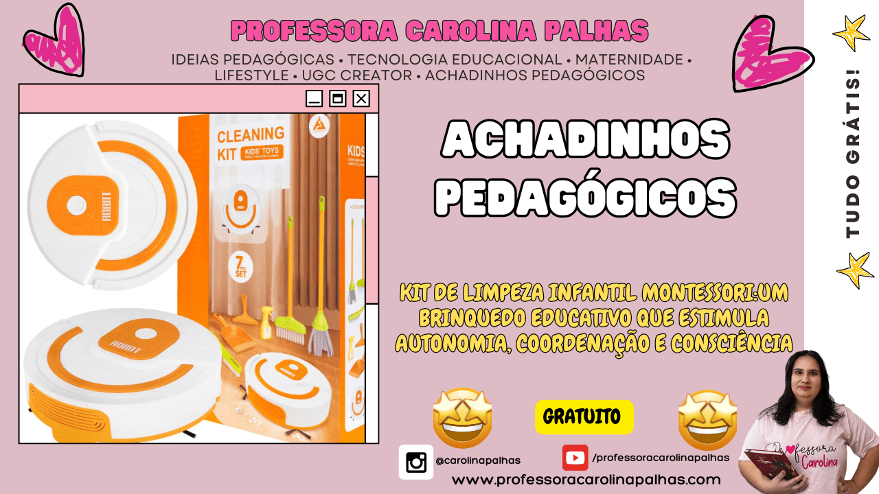 Palavras-chave: kit de limpeza infantil, brinquedo montessori, brinquedo educativo, pedagogia montessori, brinquedo de imitação, coordenação motora, criança autônoma, tarefas domésticas, brinquedo realista, educação infantil, brincar de limpar, atividades montessorianas, brinquedos pedagógicos, autonomia infantil, desenvolvimento infantil
