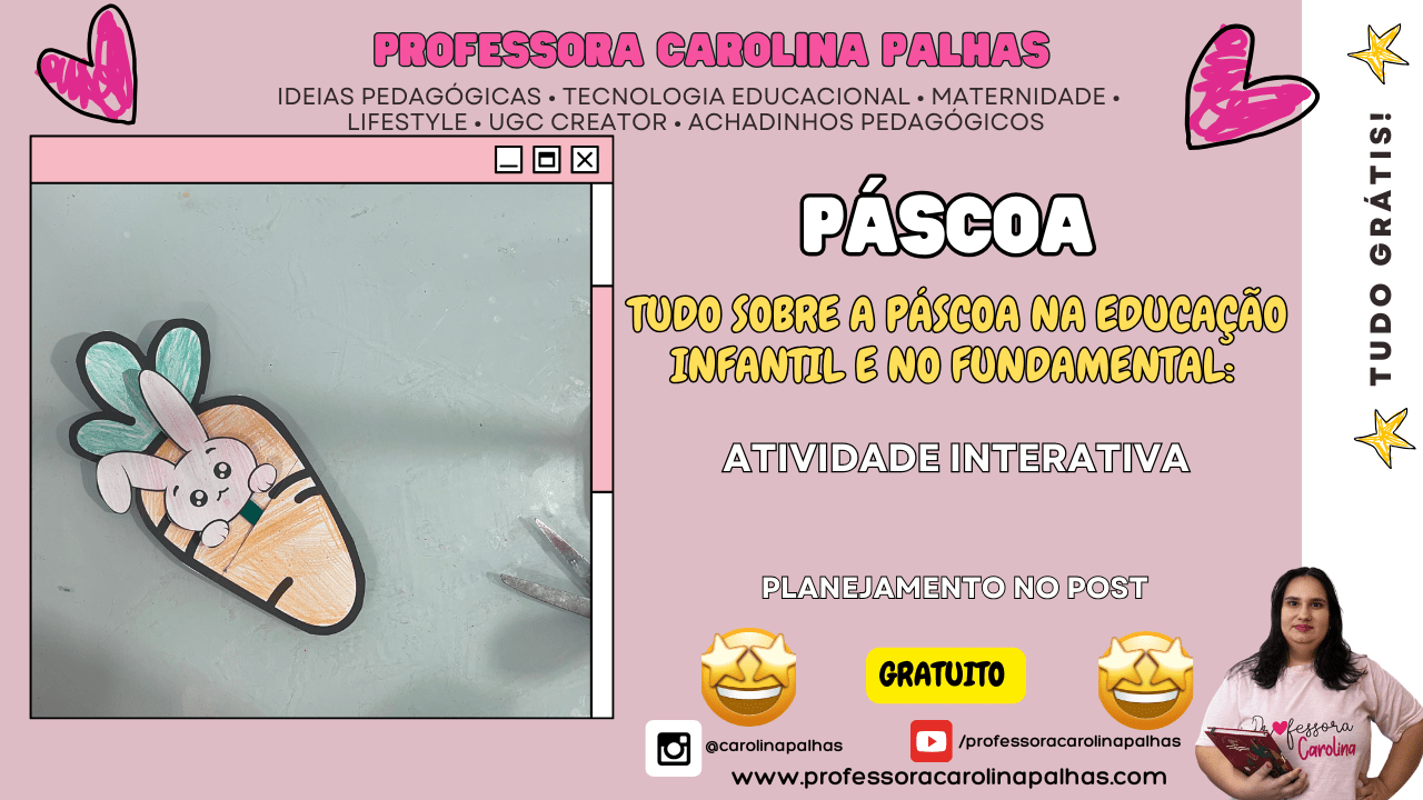 Se você é professora, mãe, coordenadora ou trabalha com crianças da Educação Infantil e dos Anos Iniciais do Ensino Fundamental, prepare-se para viver uma experiência inesquecível com as crianças! O SUPER KIT PEDAGÓGICO DE PÁSCOA foi criado com muito carinho e profissionalismo pela Professora Carolina Palhas, reunindo materiais pedagógicos lúdicos, criativos e 100% alinhados à BNCC.