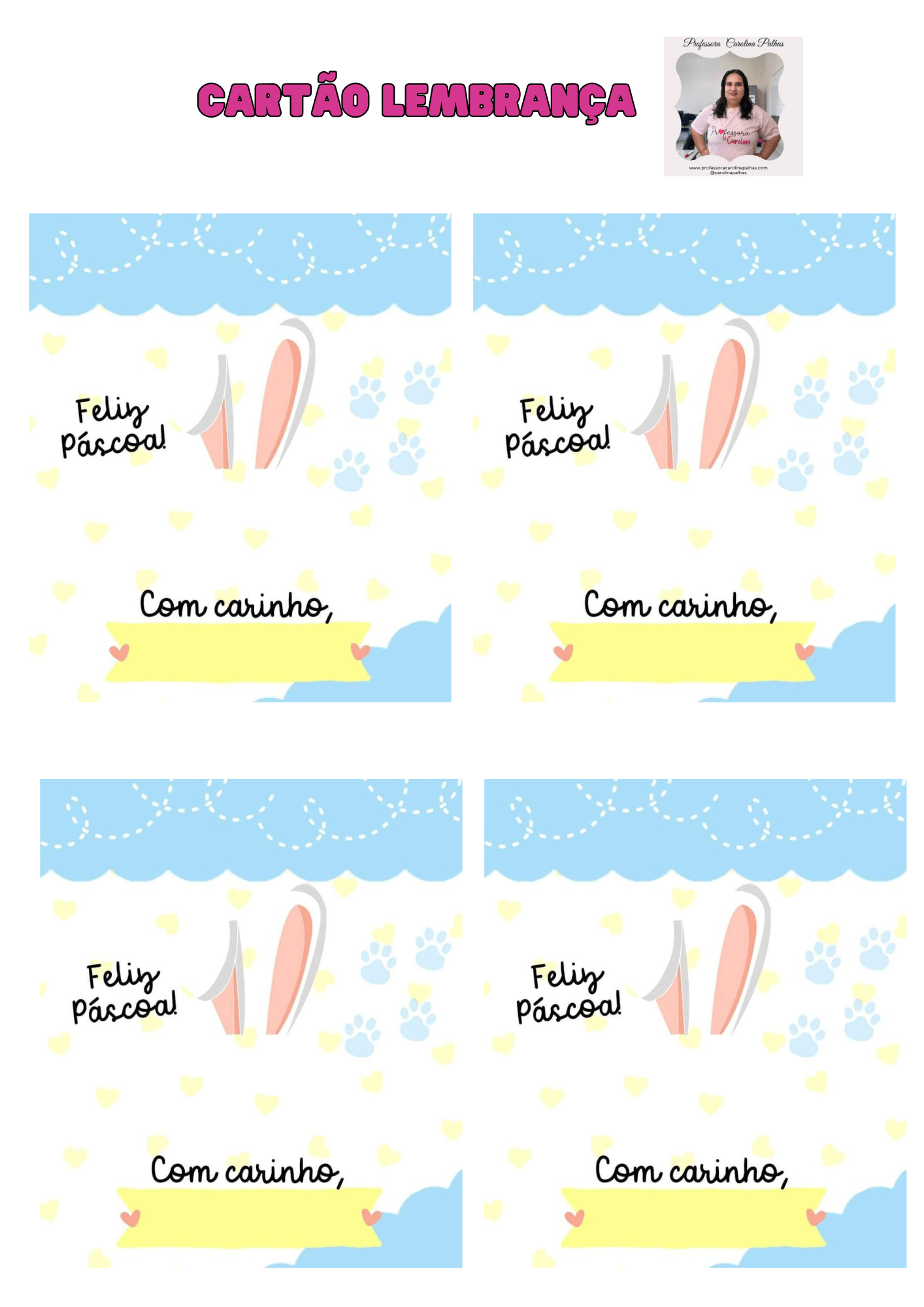 🎁 Quer mais cartões de Páscoa para imprimir? Acesse aqui a coleção completa com versões coloridas e em preto e branco → www.professoracarolinapalhas.com
