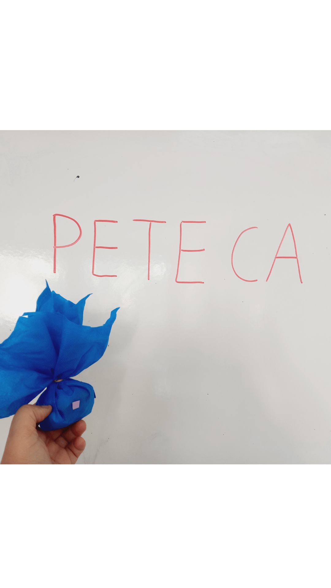 5. Escreva a palavra PETECA no quadro e explore a escrita com a turma.
