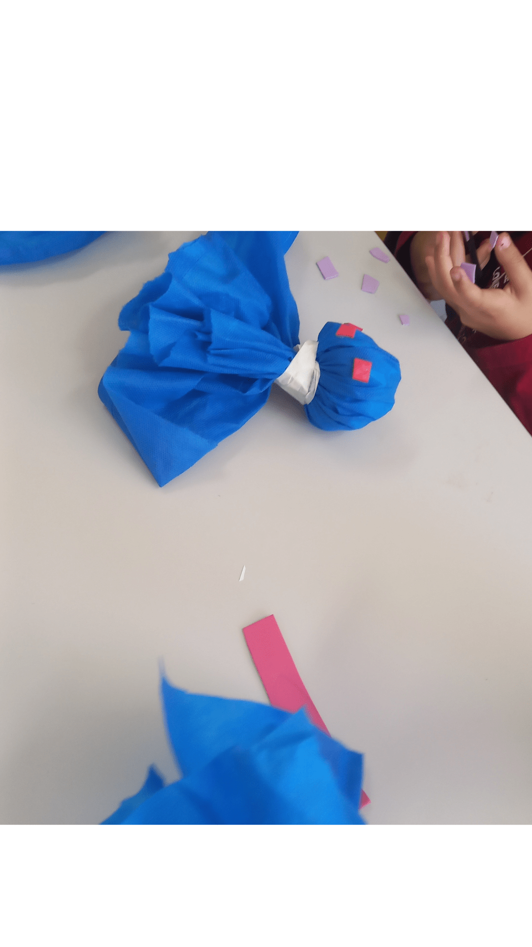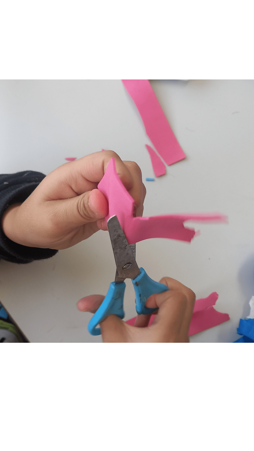 1. As crianças amassam folhas de papel para formar uma bolinha firme.
