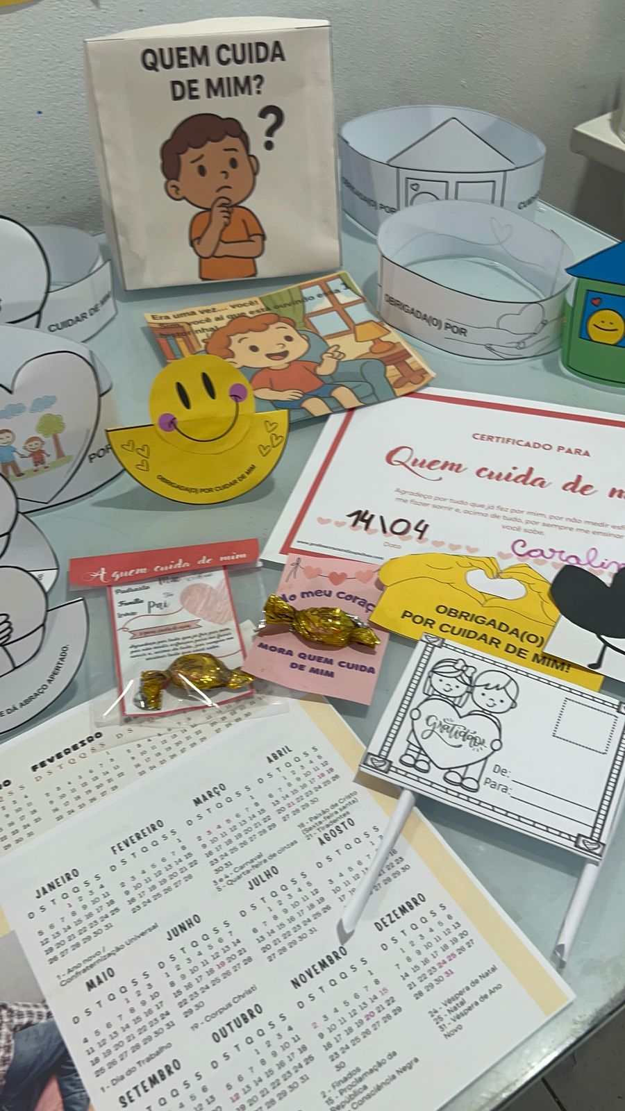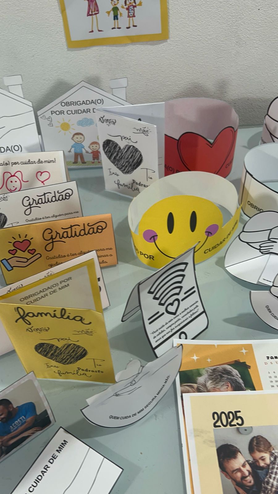 - Encerramento com um presente afetivo: as crianças podem entregar os cartões e calendários como lembrancinhas para quem cuida delas.