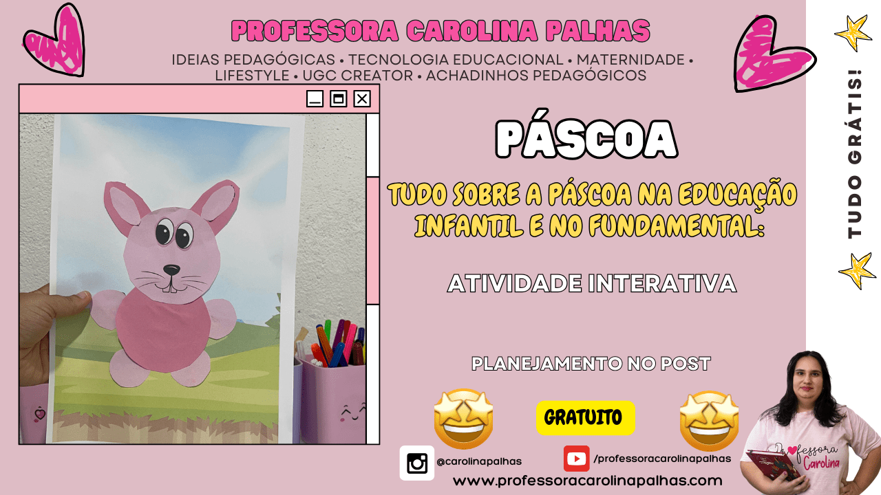 Se você é professora, mãe, coordenadora ou trabalha com crianças da Educação Infantil e dos Anos Iniciais do Ensino Fundamental, prepare-se para viver uma experiência inesquecível com as crianças! O SUPER KIT PEDAGÓGICO DE PÁSCOA foi criado com muito carinho e profissionalismo pela Professora Carolina Palhas, reunindo materiais pedagógicos lúdicos, criativos e 100% alinhados à BNCC.