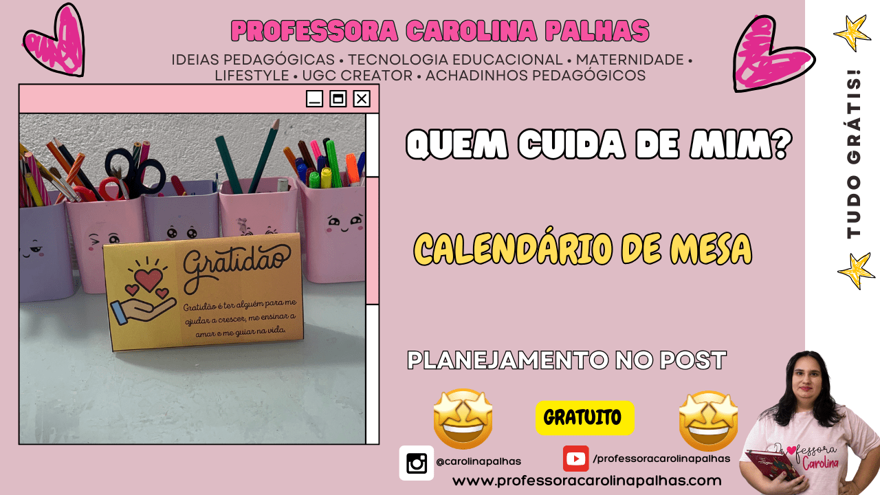 O calendário de mesa com o tema “Quem Cuida de Mim” é uma proposta simples, mas cheia de significado. Ele transforma o cotidiano da sala de aula em uma oportunidade de afetar positivamente a vida das crianças e das famílias. Além disso, funciona como ponte entre casa e escola, fortalecendo vínculos e gerando memórias afetivas duradouras.