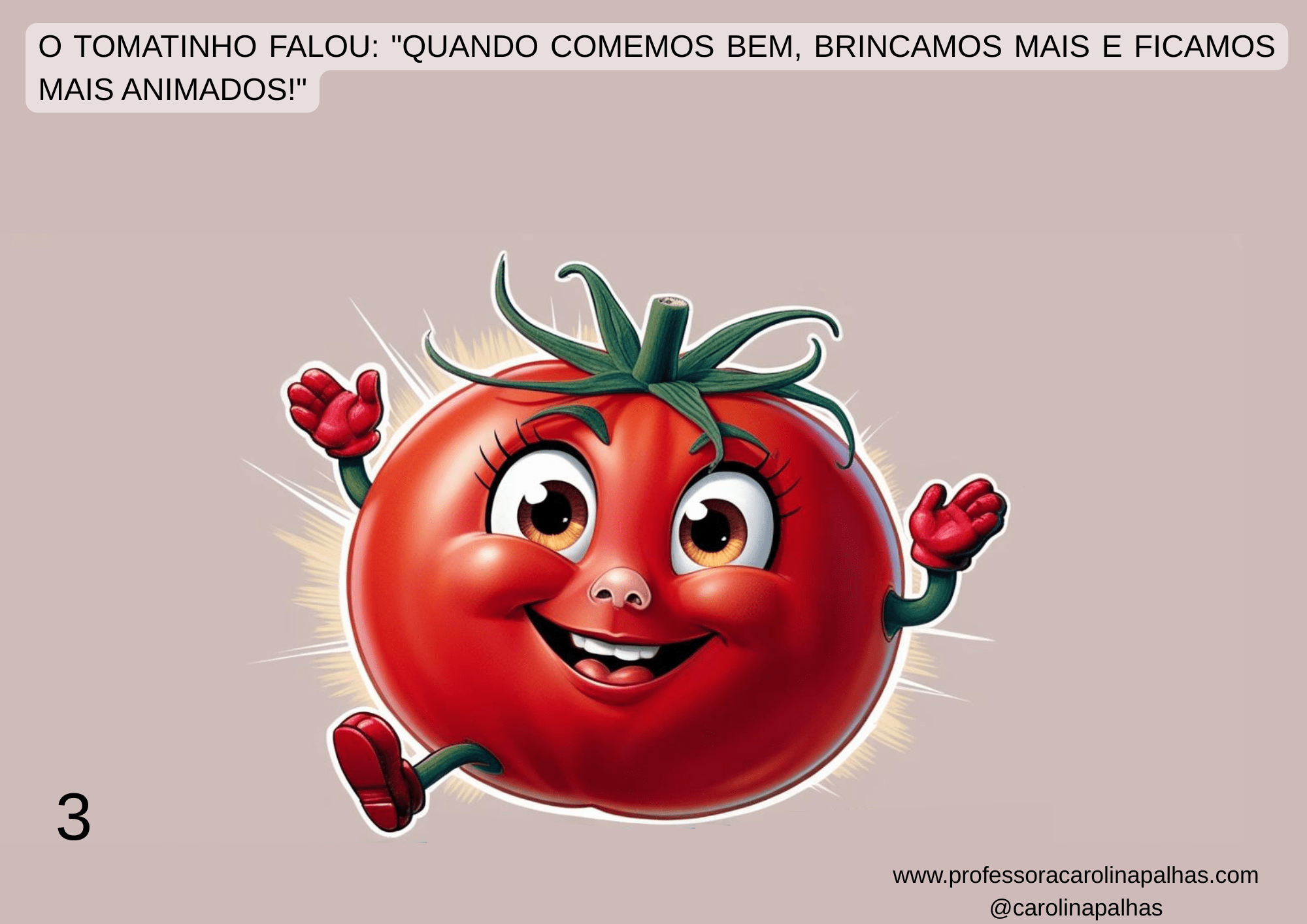 Página 4: O Tomatinho falou: “Quando comemos bem, brincamos mais e ficamos mais animados!”