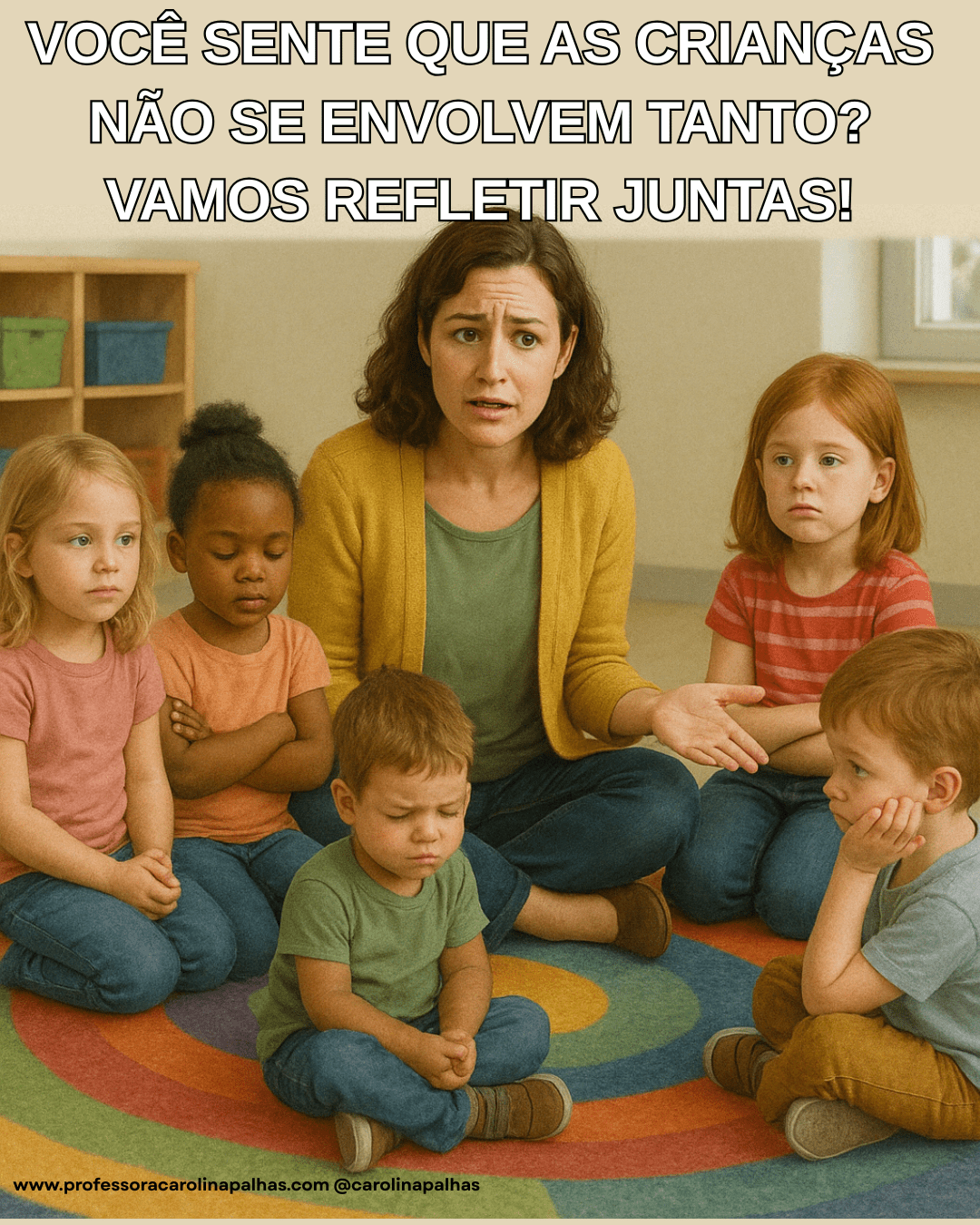 PALAVRAS-CHAVE: rodinha na educação infantil, erros na rodinha, atividades em grupo, rotina escolar, BNCC, planejamento pedagógico, educação infantil, sugestões para rodinha, momentos pedagógicos, desenvolvimento infantil