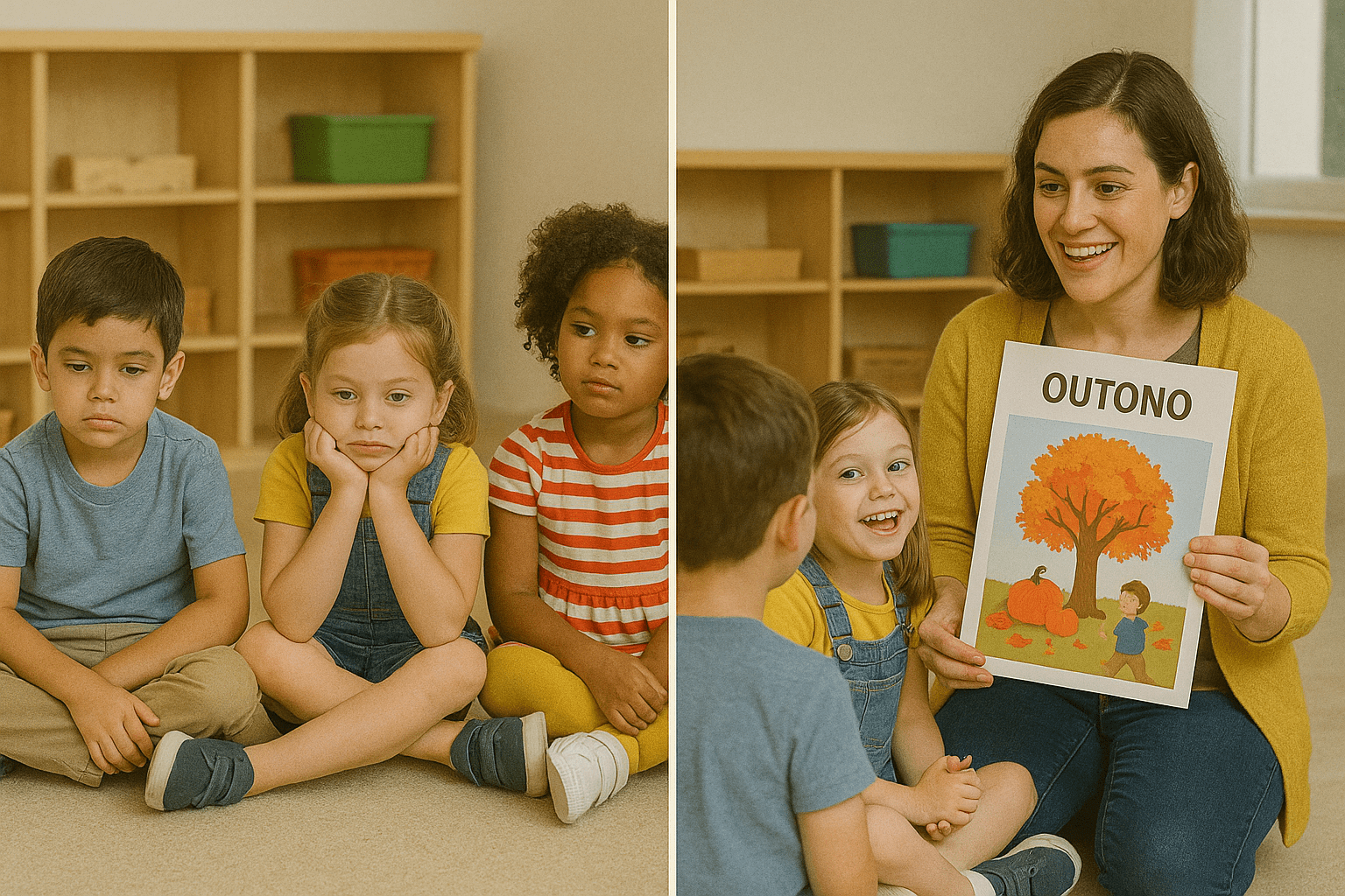 Consequências: Crianças dispersas e sem conexão com o momento. Solução: Planeje temas significativos e conectados ao universo infantil. Objetivo: Estimular o interesse e a participação ativa.