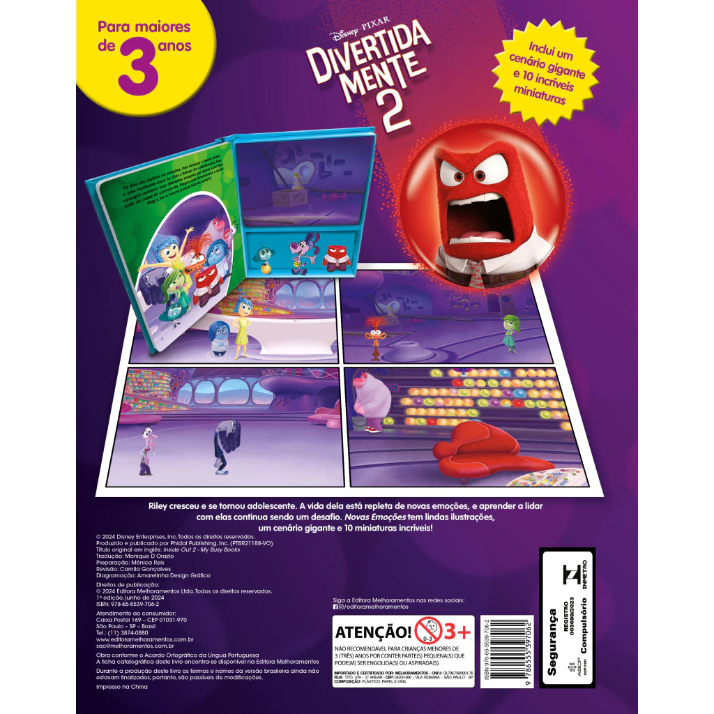 Palavras-chave: Divertidamente 2, livro infantil sobre emoções, novas emoções da Riley, livro com miniaturas, livro educativo com cenário, sentimentos na infância, educação emocional, brinquedo emocional infantil, livro interativo, expressar emoções, emoções para crianças, Divertida Mente 2, Disney livro capa dura, cenário gigante Divertidamente