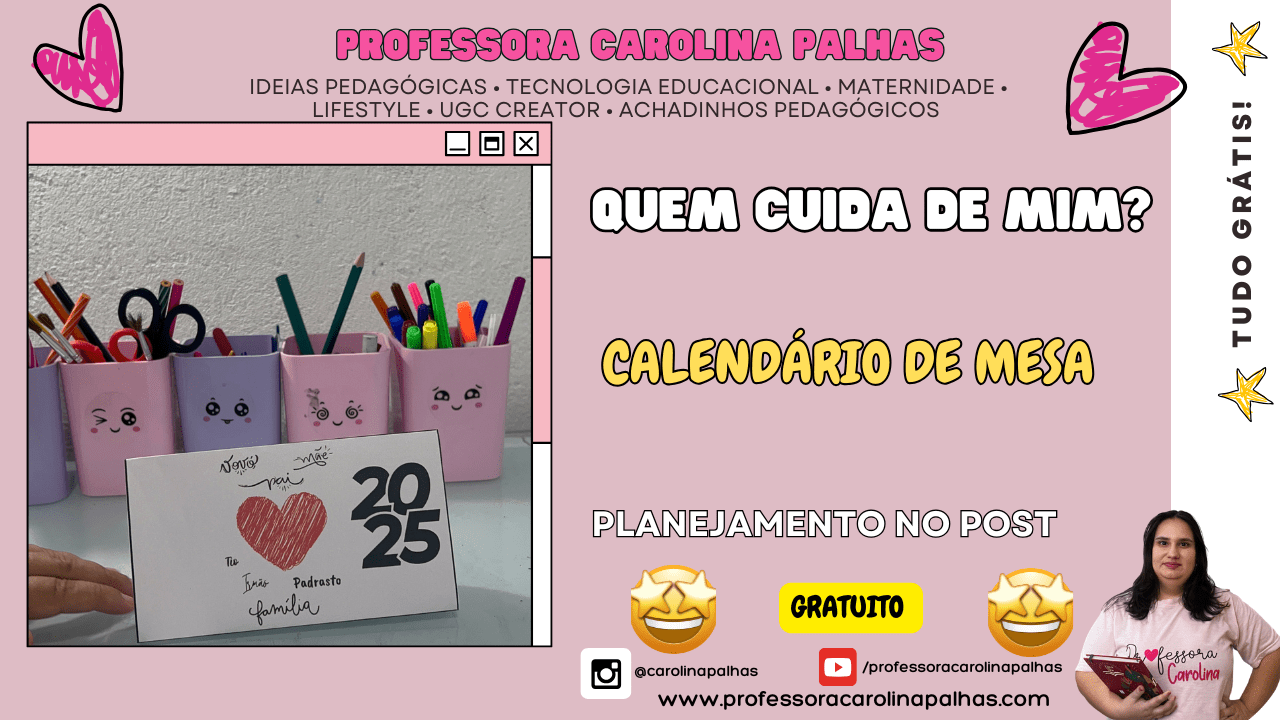 O calendário de mesa com o tema “Quem Cuida de Mim” é uma proposta simples, mas cheia de significado. Ele transforma o cotidiano da sala de aula em uma oportunidade de afetar positivamente a vida das crianças e das famílias. Além disso, funciona como ponte entre casa e escola, fortalecendo vínculos e gerando memórias afetivas duradouras.