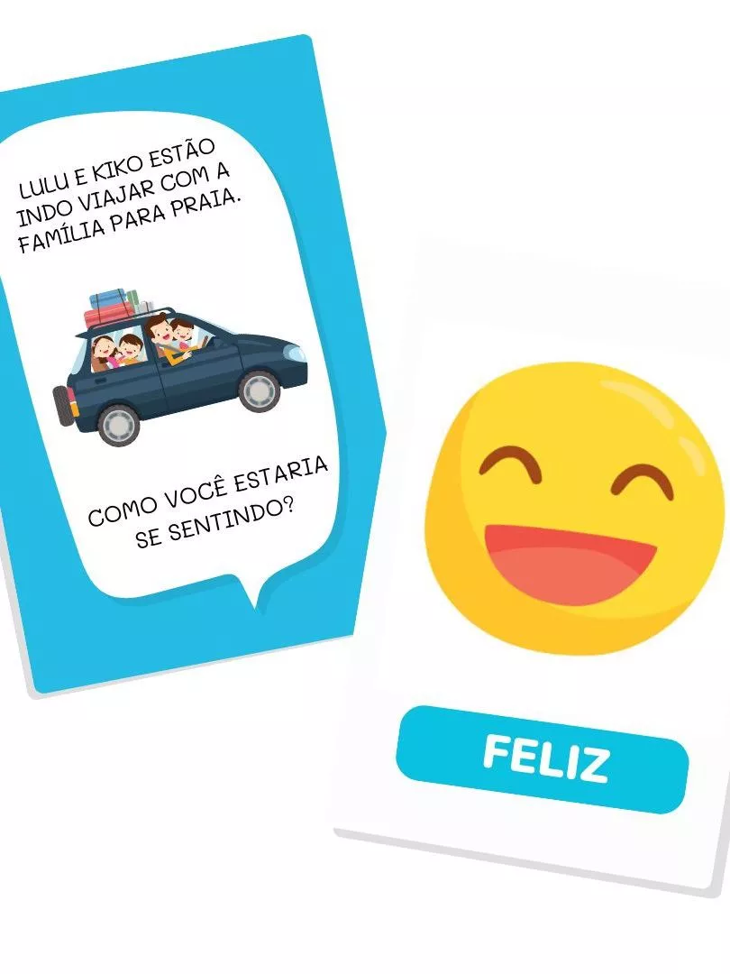 1. Carta de Situação – mostra um cenário (ex: “Lulu e Kiko estão indo viajar com a família para a praia. Como você estaria se sentindo?”)
