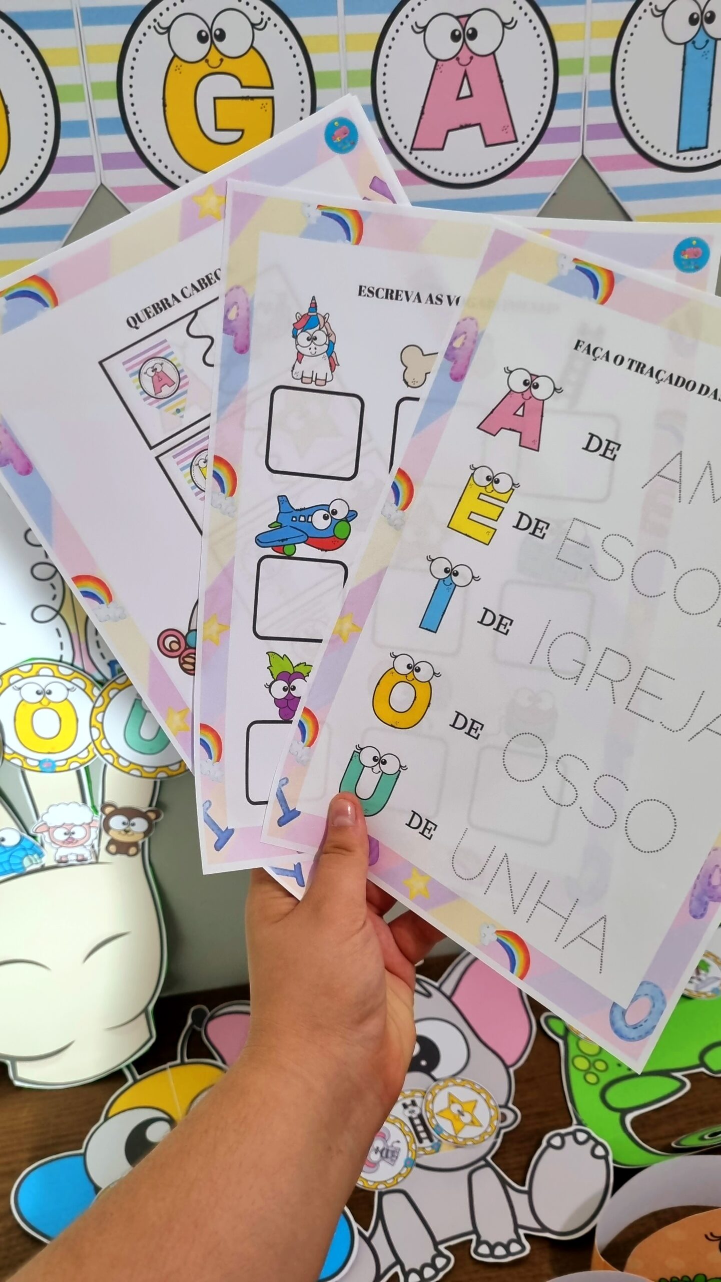 Com o Kit Festa das Vogais, essas ideias ficam ainda mais completas, porque você tem materiais prontos, coloridos e divertidos para cada uma dessas dinâmicas.