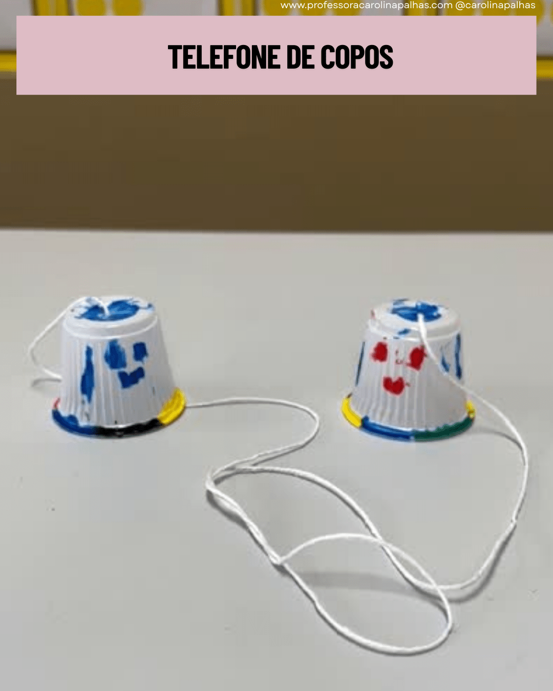 3. Cada criança segura um copo e a outra fala — o som percorre o barbante!