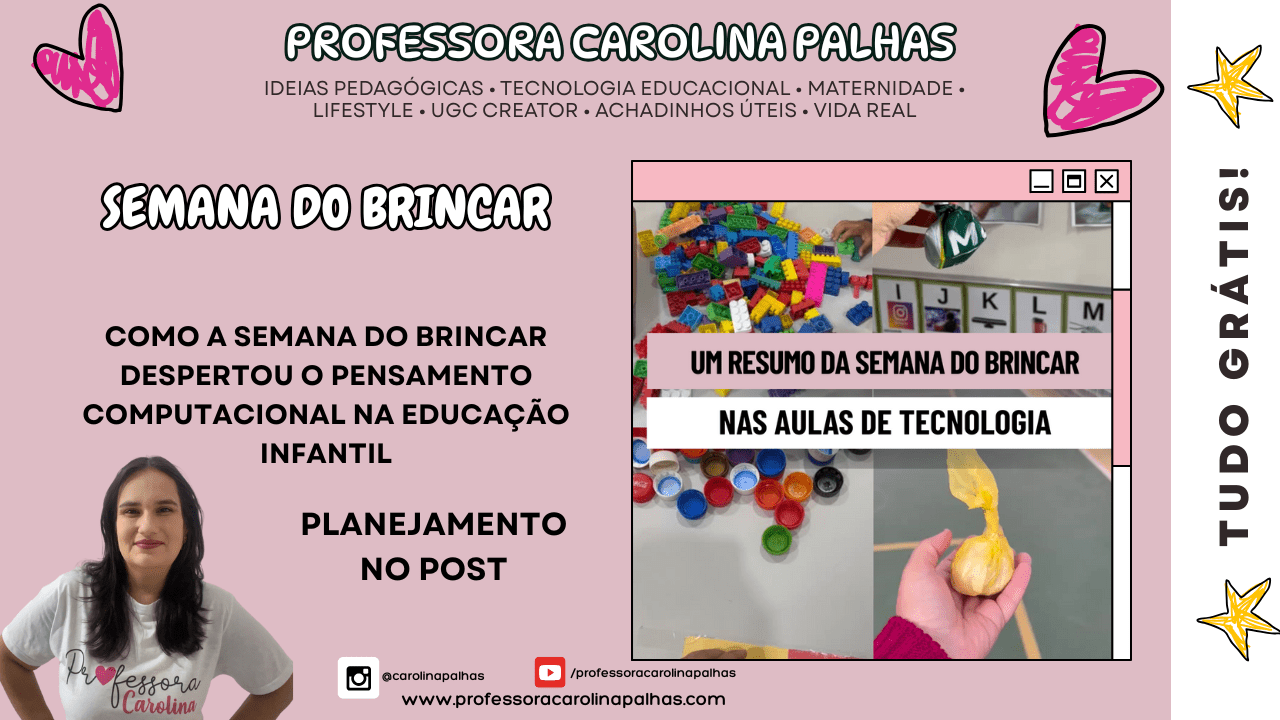 Durante a Semana do Brincar, desenvolvi com as crianças atividades que uniram ludicidade, consciência ambiental e fundamentos do pensamento computacional — tudo de forma concreta, acessível e significativa.