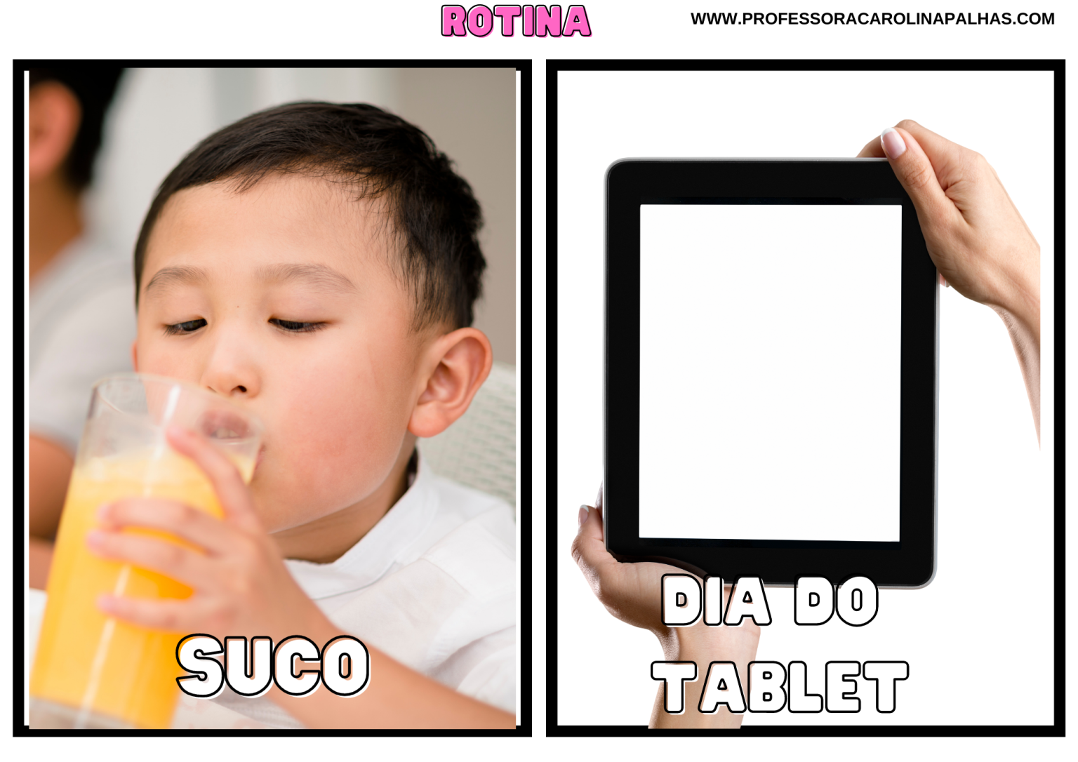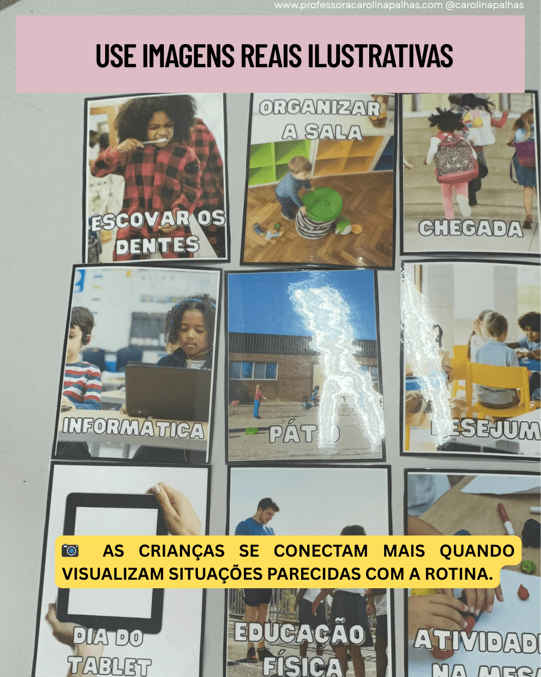 Dica extra: organize essas imagens sobre a mesa antes de fixar no quadro. Isso ajuda a planejar visualmente a sequência do dia.