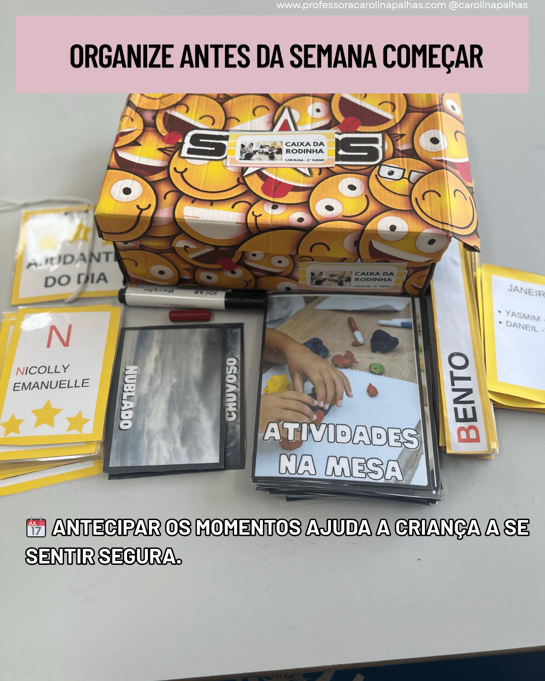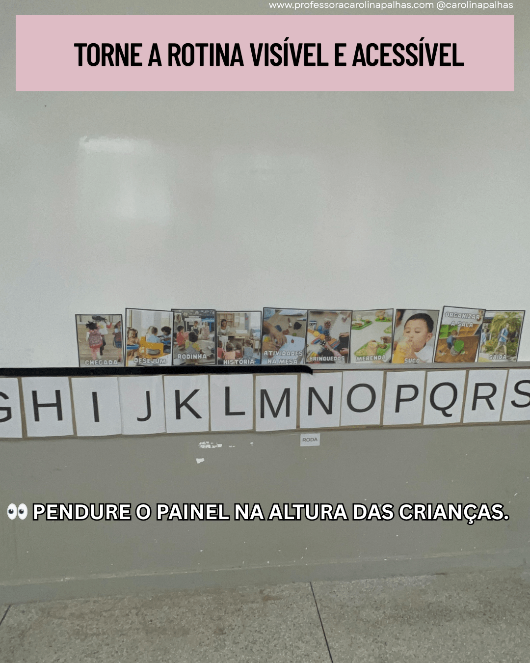 Dica valiosa: coloque o painel próximo ao local da rodinha ou da entrada da sala. Isso fortalece o hábito de iniciar o dia com o momento da rotina.