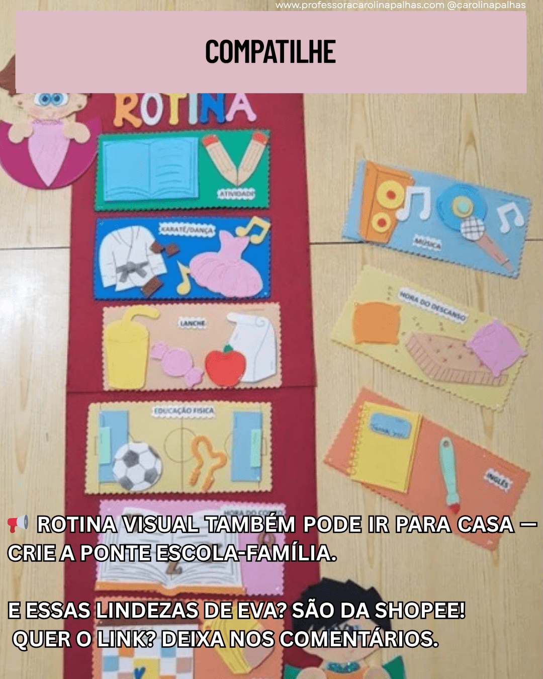 Fica a dica: essas lindezas de EVA ajudam a compor um ambiente mais acolhedor e podem ser usadas junto com as imagens reais. Quer o link? Deixa nos comentários! Acesse aqui: Kit de Rotina em EVA na Shopee