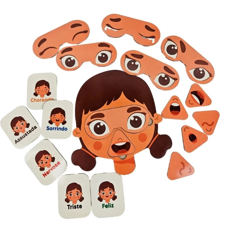1️⃣Jogo das Expressões em Madeira – Rosto das Emoções e Sentimentos – Versão Feminina e Masculina