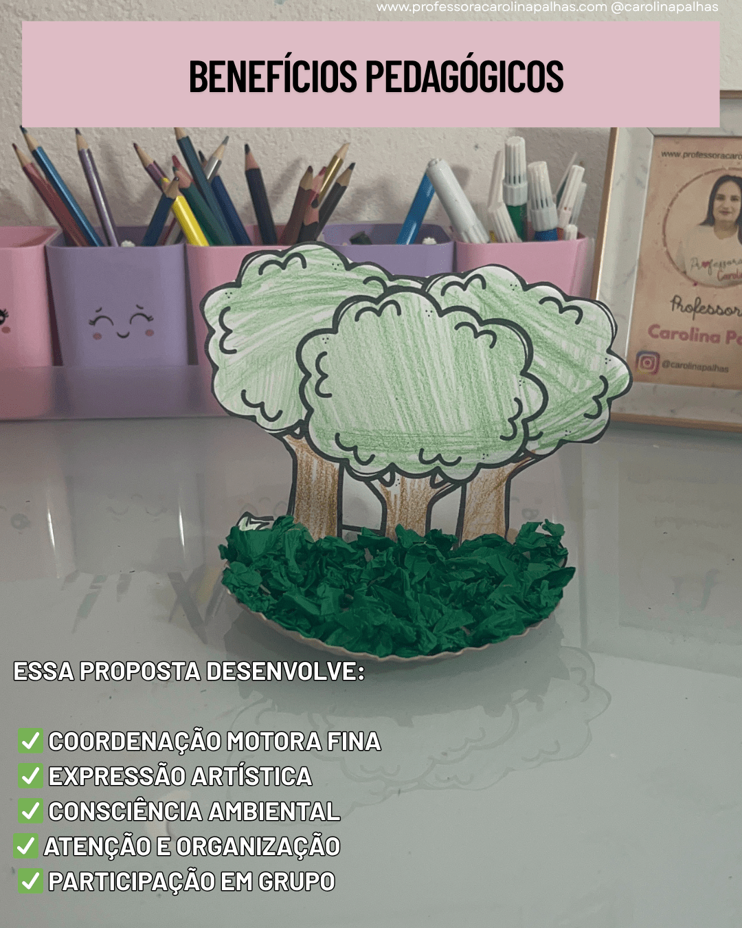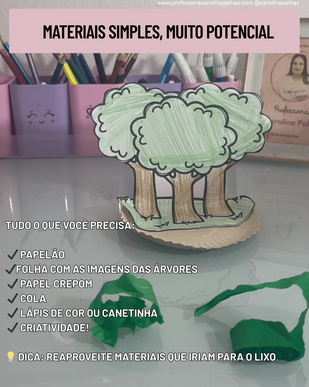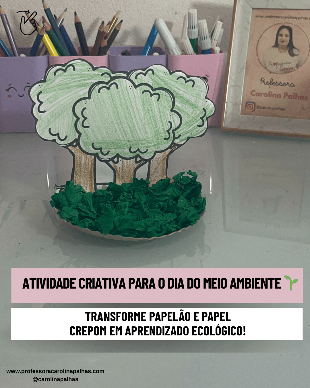 Palavras-chave SEO: atividade dia do meio ambiente, mini floresta educação infantil, projeto sustentável na escola, coordenação motora fina, reciclagem com crianças, BNCC educação infantil, atividade com papelão, papel crepom educação infantil, projeto meio ambiente, educação ambiental infantil