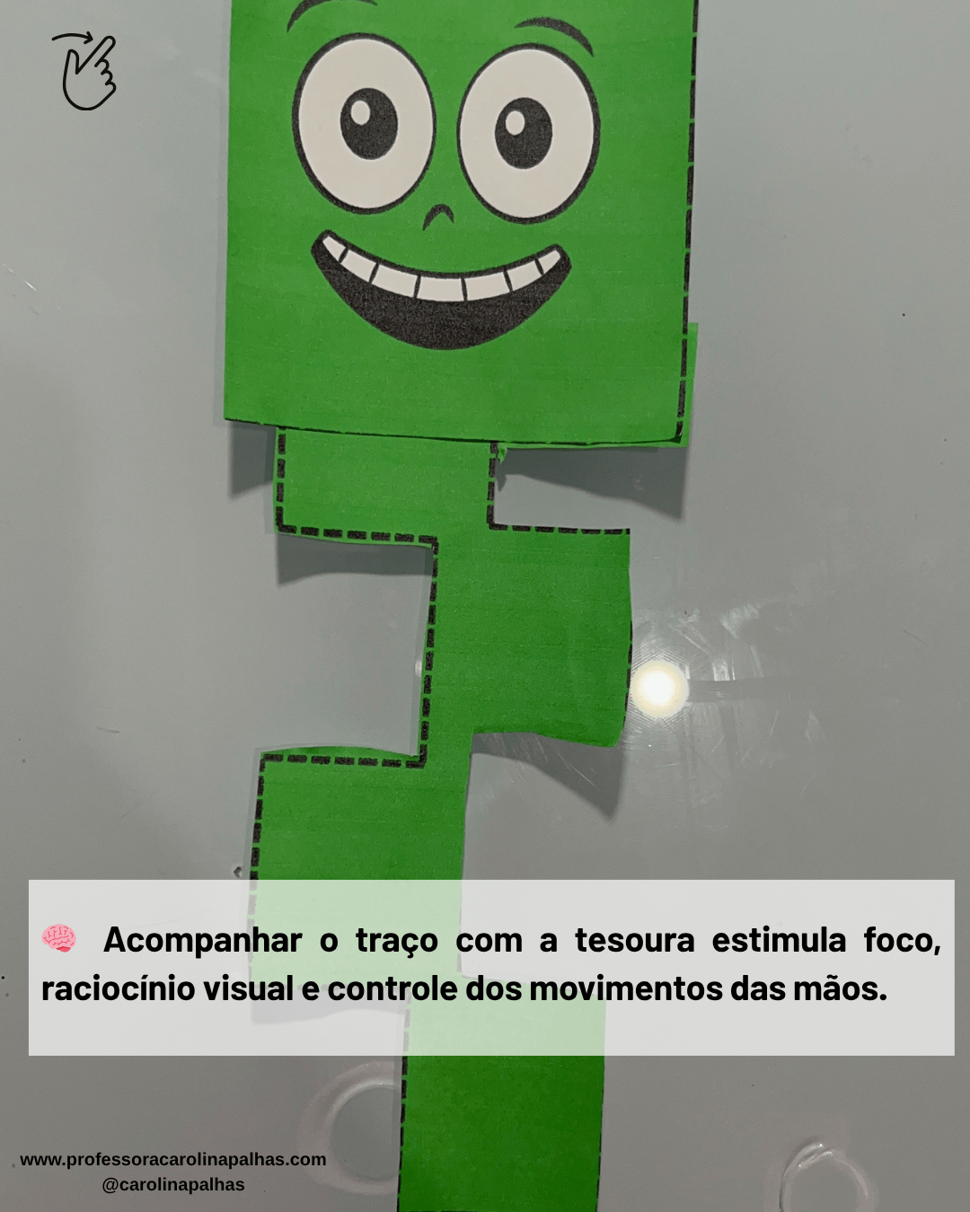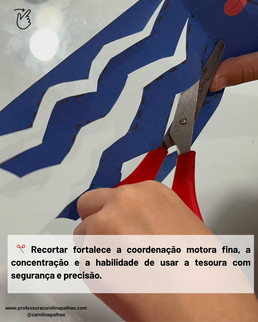 O uso da tesoura pode parecer apenas uma tarefa motora, mas vai muito além. Ao segurar e manusear a tesoura, a criança ativa processos de coordenação motora fina, integração sensorial, percepção visual e concentração. Além disso, o recorte contribui diretamente para o desenvolvimento da coordenação óculo-manual, essencial para outras habilidades escolares como a escrita.
