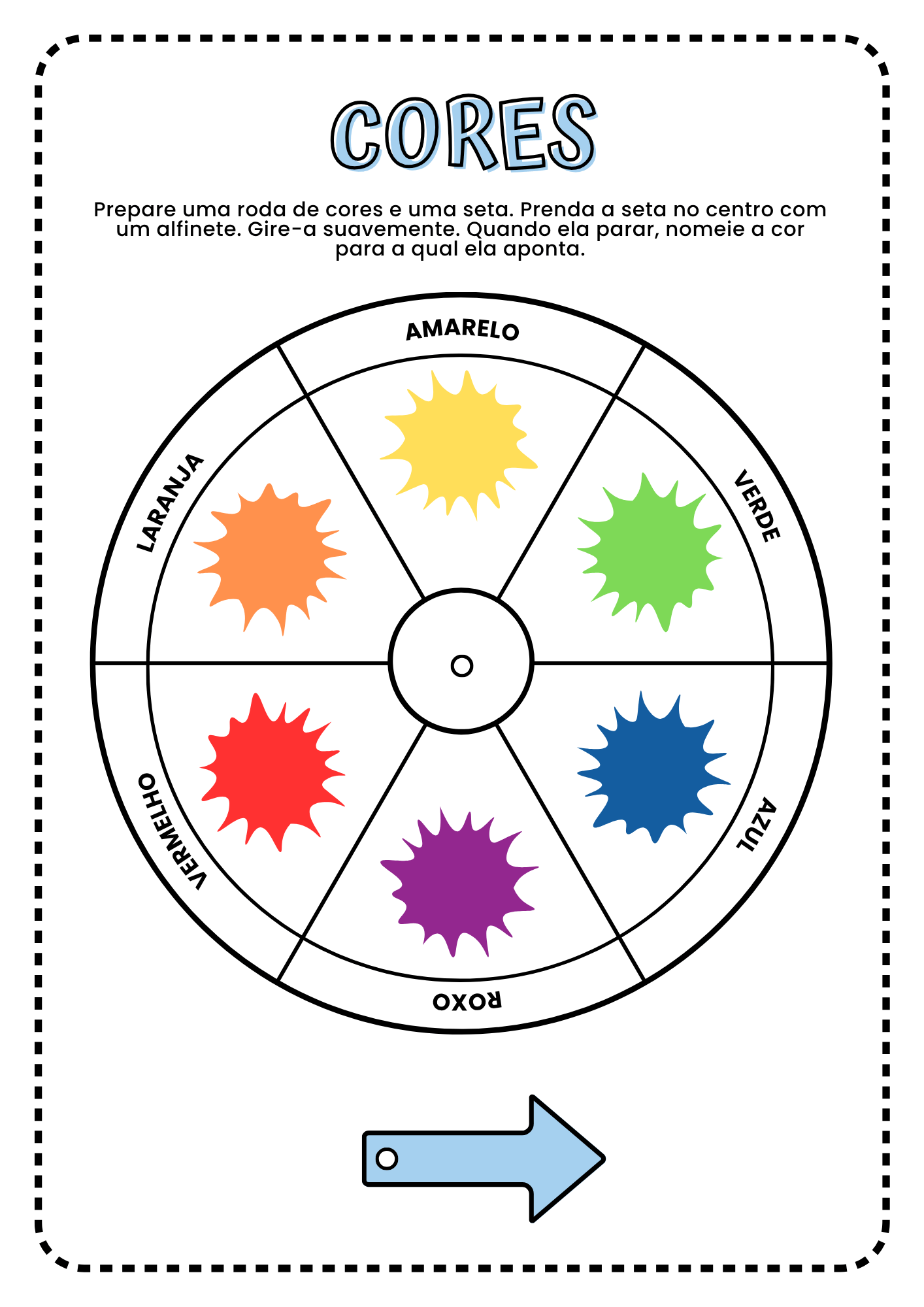 ✅ Atividade 1: Jogo da roleta de cores: girar e nomear objetos da cor.