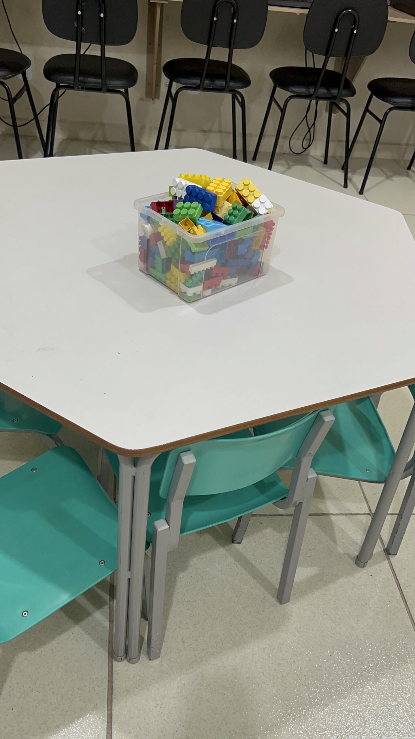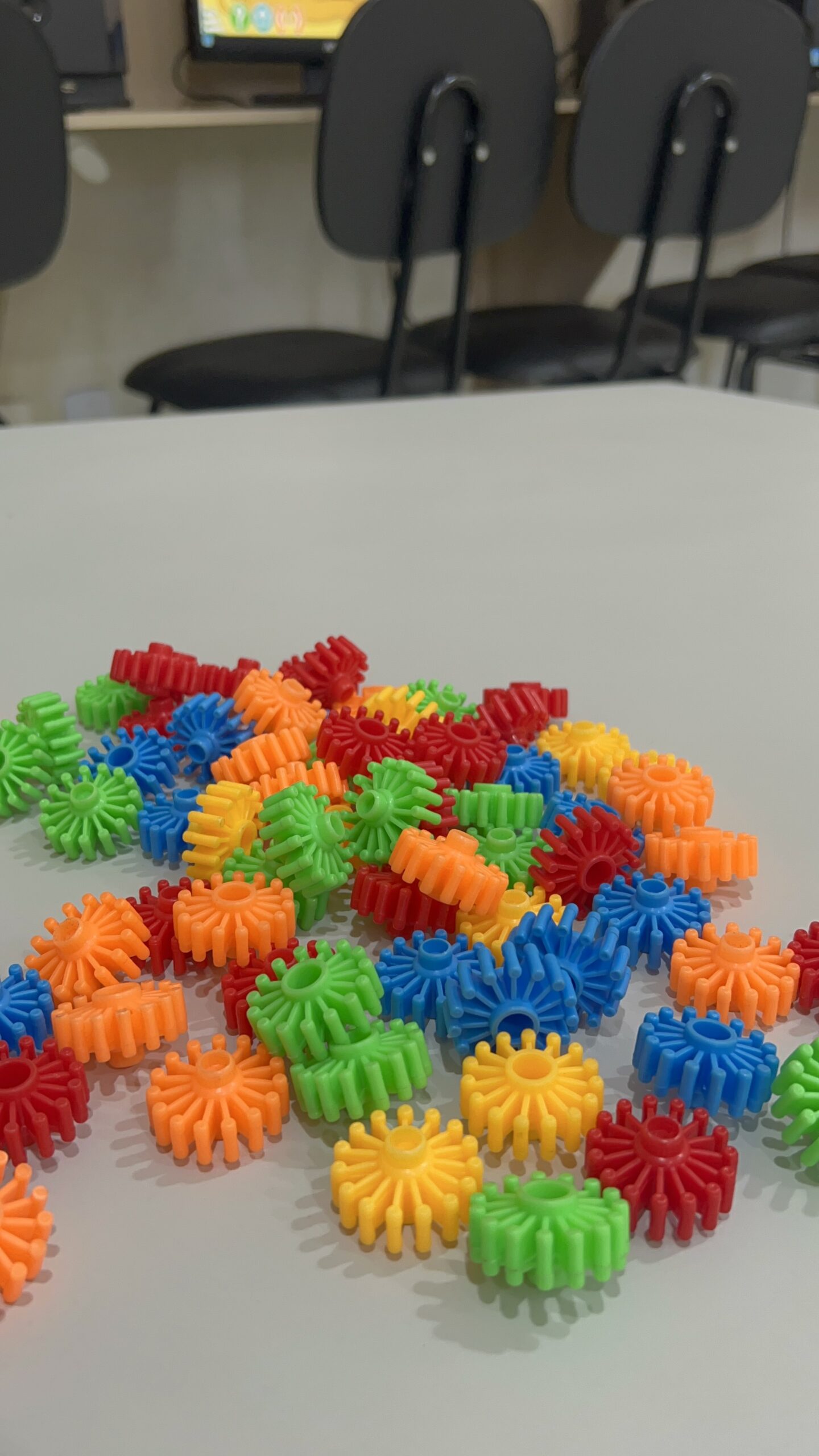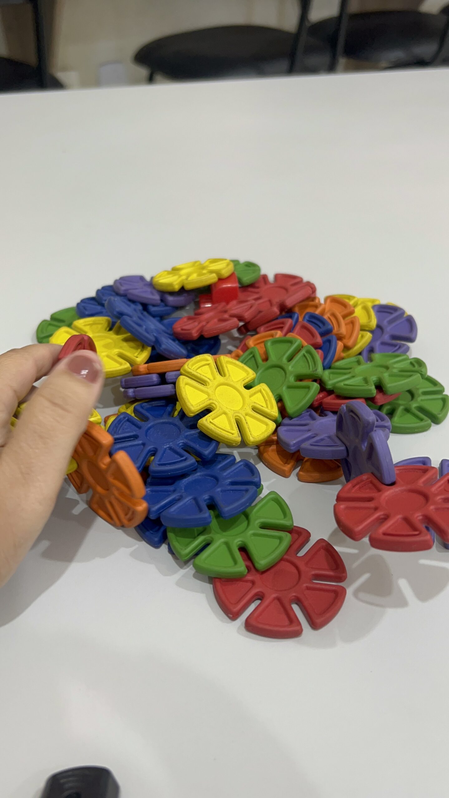 Na minha sala, costumo deixar os conectores disponíveis no cantinho de exploração livre. Também uso em atividades dirigidas para trabalhar temas como cores, contagem e sequências. Outra possibilidade é propor desafios: “Quem consegue montar uma torre com cinco peças de cores diferentes?”