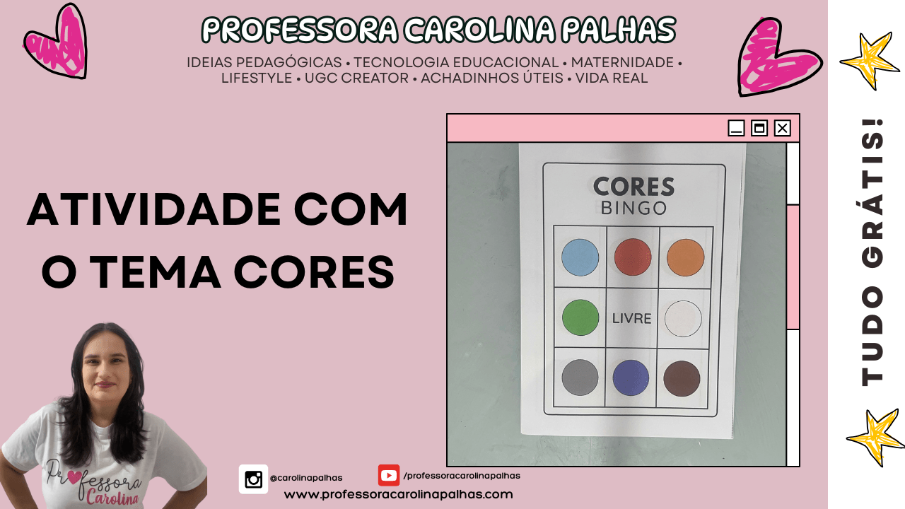 Eu, Professora Carolina Palhas, preparei uma atividade exclusiva, gratuita e super divertida, que vai facilitar sua rotina pedagógica e encantar as crianças: a ATIVIDADE COM O TEMA CORES, disponível para download 100% grátis no meu blog.