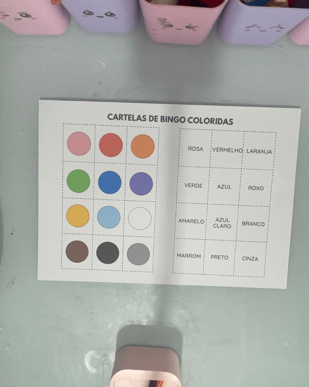 ✅ Atividade 1: Revisar as cores usando cartões coloridos.
