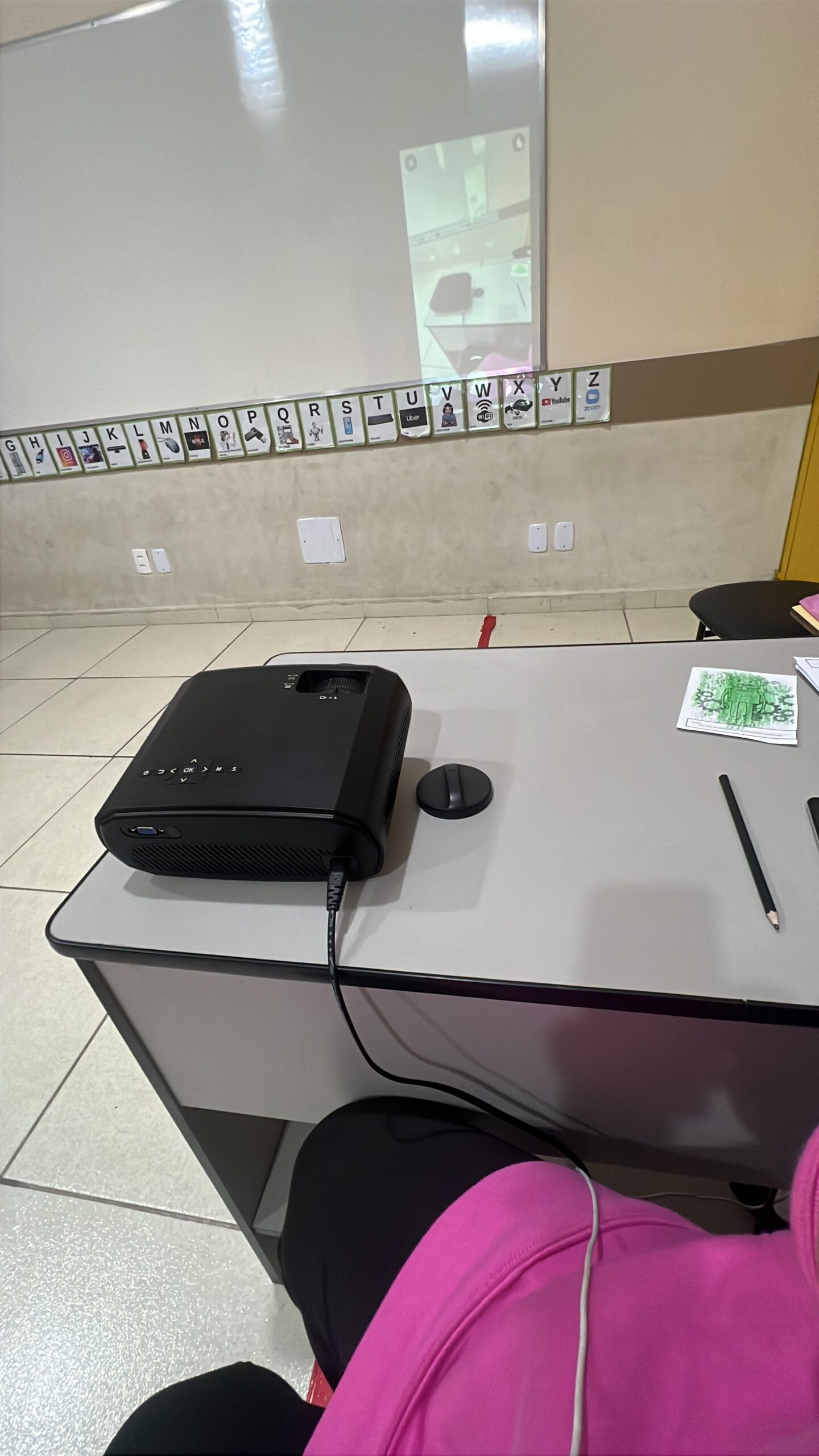 Entre todos os recursos que utilizo, o projetor multimídia foi um divisor de águas na forma de ensinar. Ele transforma qualquer parede ou superfície clara em uma tela gigante, criando momentos interativos que prendem a atenção das crianças.
