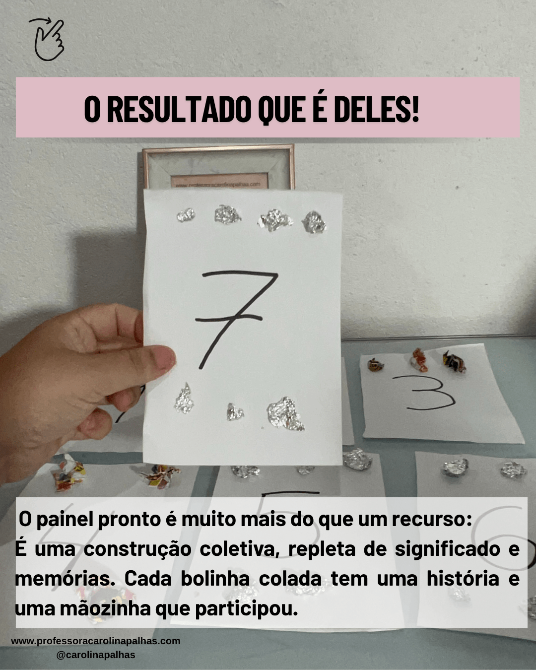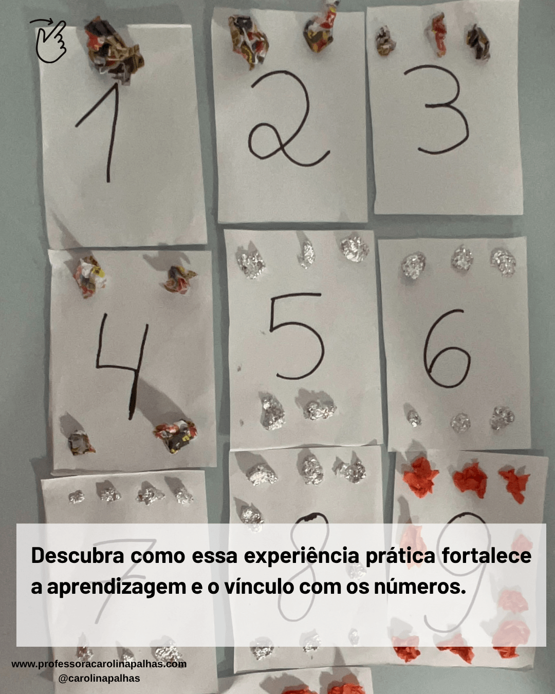 Essa prática pedagógica fortalece habilidades cognitivas e socioemocionais, porque a criança sente que faz parte do processo. Quando cada bolinha amassada e colada carrega a marca de pequenas mãozinhas curiosas, o número deixa de ser um símbolo distante e passa a ser algo concreto, próximo, real.