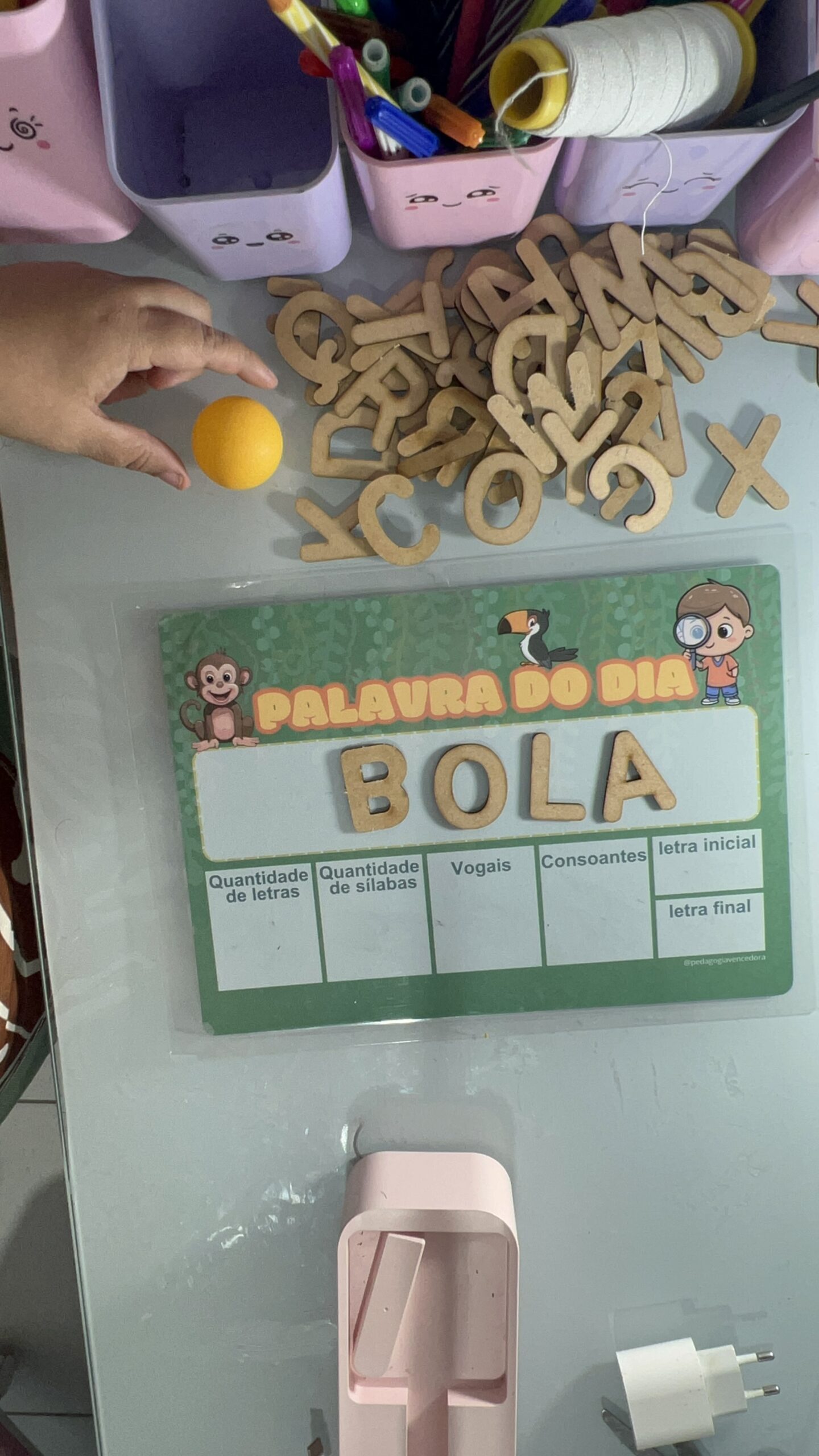 palavras-chave: alfabetização, educação infantil, recursos pedagógicos, Shopee, materiais educativos, ensino lúdico, letras móveis, lousa mágica, painel palavra do dia, quebra-cabeça das vogais, coordenação motora, consciência fonológica, aprendizado significativo, rotina de alfabetização