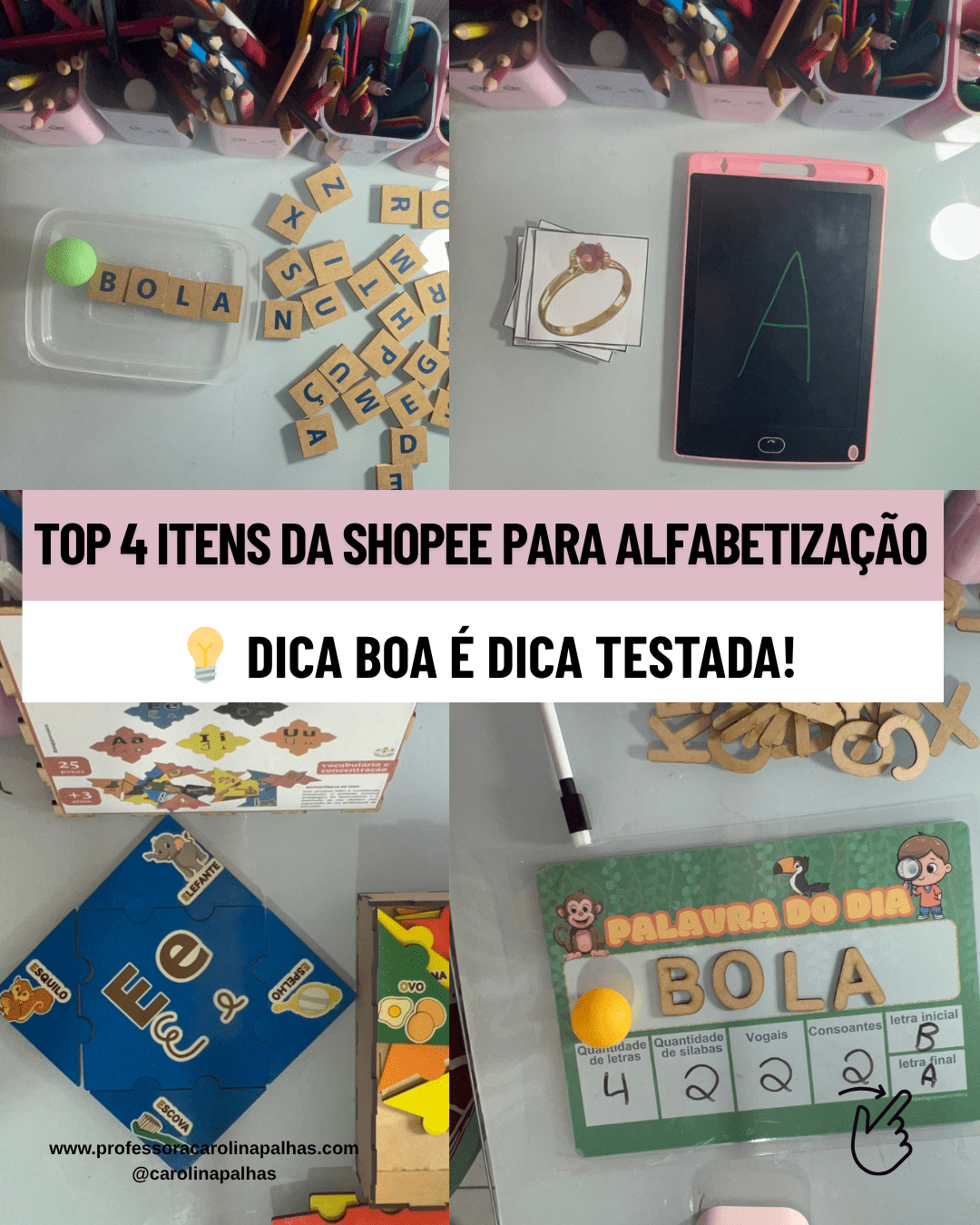 ✨ Quer ver esses materiais em ação? Me acompanhe no Instagram @carolinapalhas e acesse a seção Achadinhos da Professora no blog para mais dicas e links!