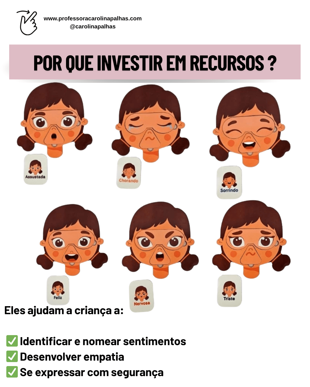 Hoje, quero compartilhar 4 recursos pedagógicos incríveis para trabalhar emoções com as crianças, além de um planejamento completo com atividades alinhadas à BNCC. Você pode usar tanto em sala de aula quanto em casa!