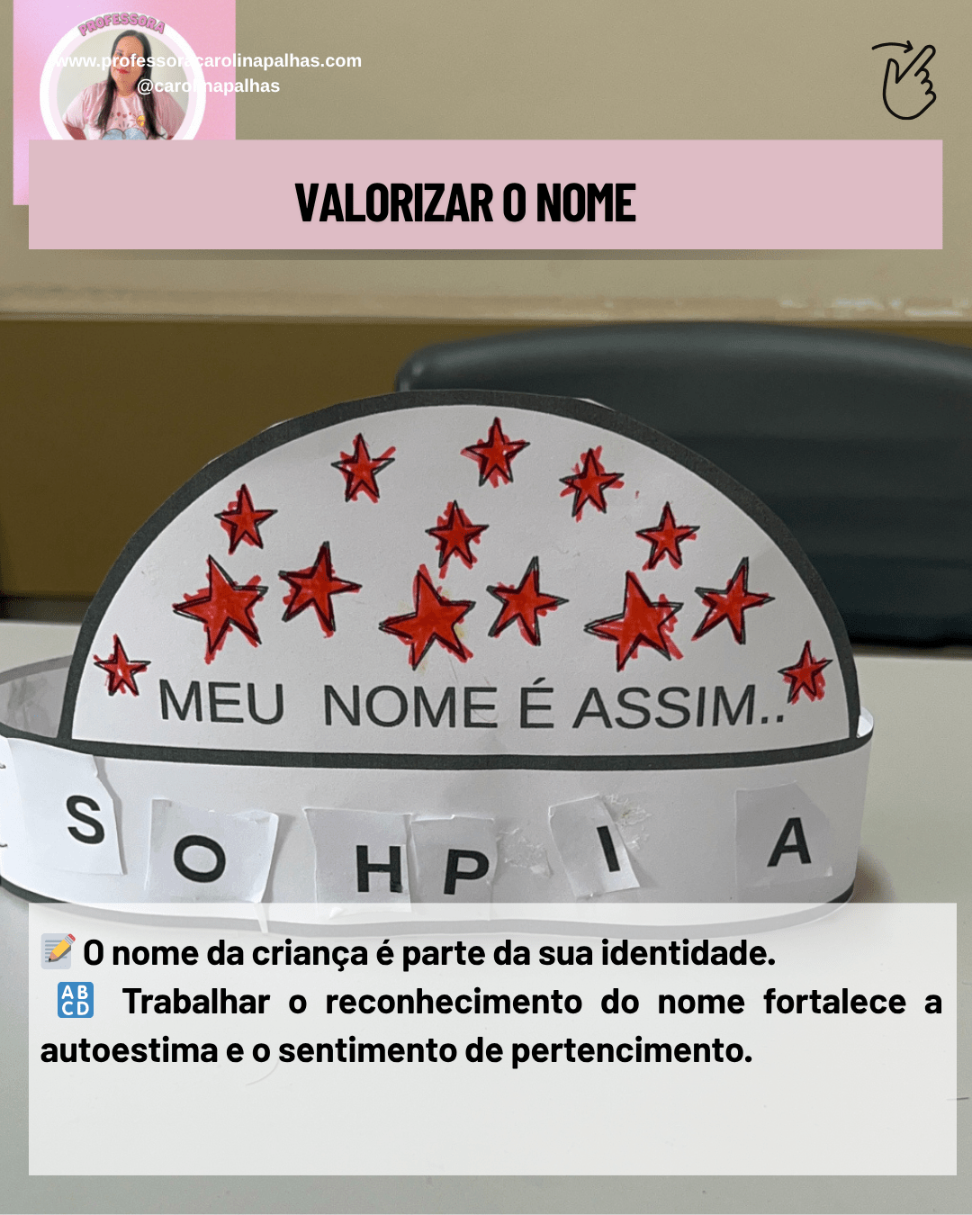 Palavras-chave: atividade com nome, meu nome é assim, identidade, educação infantil, BNCC, nome próprio, plano de aula, ludicidade, atividades lúdicas, autoestima infantil, reconhecimento do nome, desenvolvimento infantil, roda de conversa, alfabetização inicial, pré-escola, plano semanal