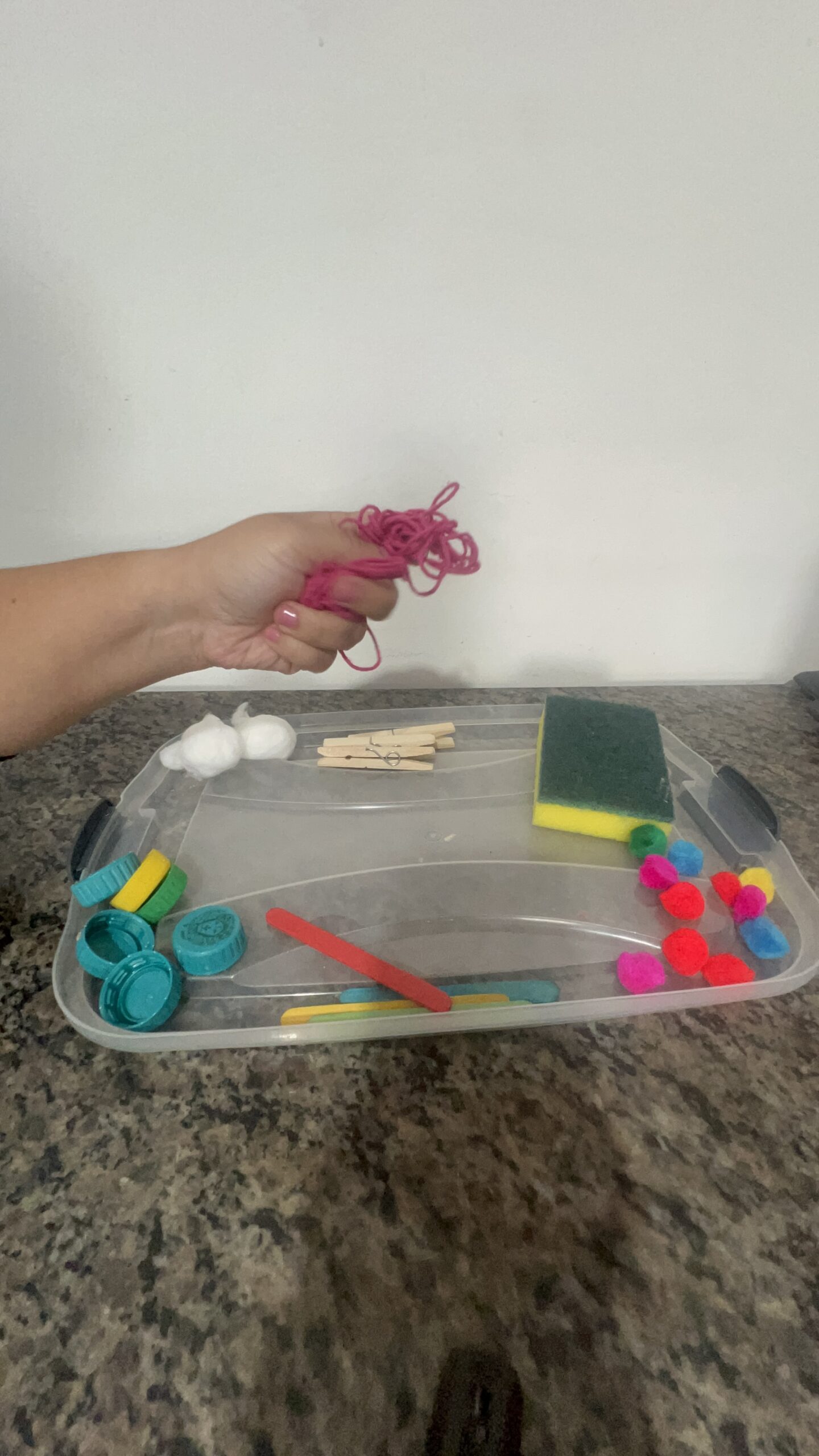 🤲 Coordenação motora fina: Abrir pregadores, pegar pompons ou enrolar fios de lã são gestos que exigem controle das mãos e dedos, essenciais para habilidades futuras como a escrita.