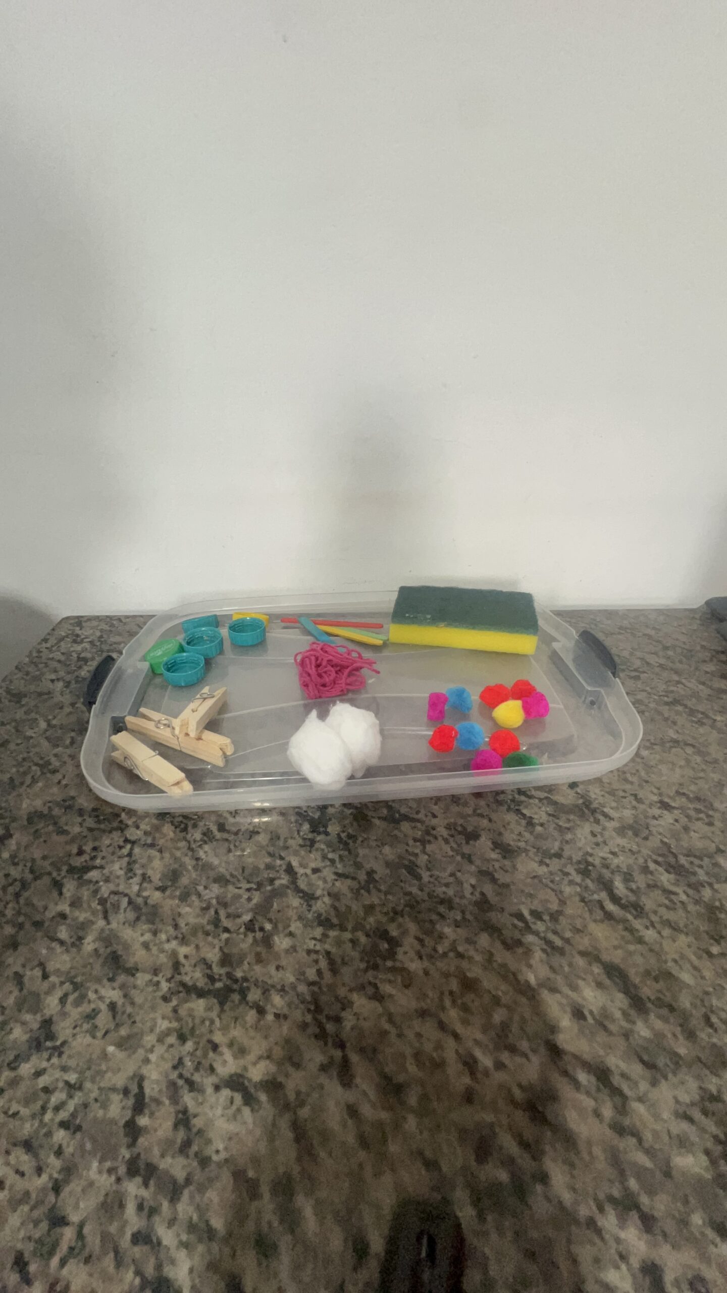 ✅ Uma bandeja plástica simples para organizar os materiais