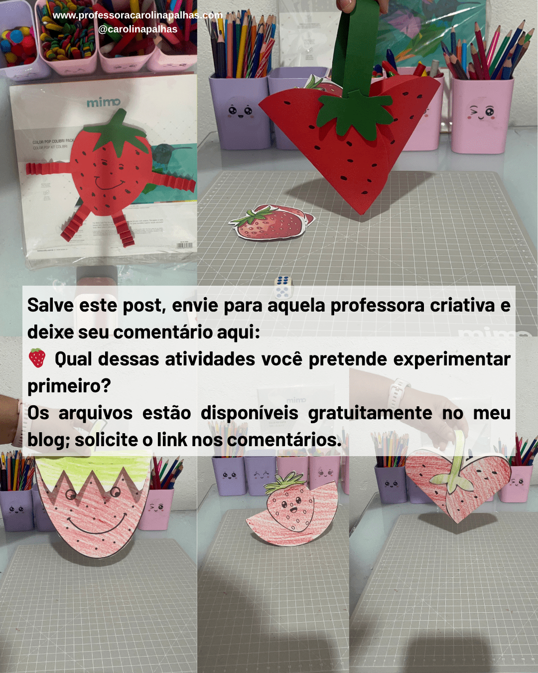 #MorangoDoAmor, #AtividadesComMorango, #EducaçãoInfantil, #AlfabetizaçãoLúdica, #CoordenaçãoMotora, #PapelColorPop, #PapelColibri, #MimoCrafts, #ProfessoraCriativa, #CarolPalhas, #RecursoPedagógico, #IdeiasPedagogicas, #BrincadeirasEducativas, #LivroInfantil, #DicaDeAtividade, #AtividadeTematica, #EducarComAfeto