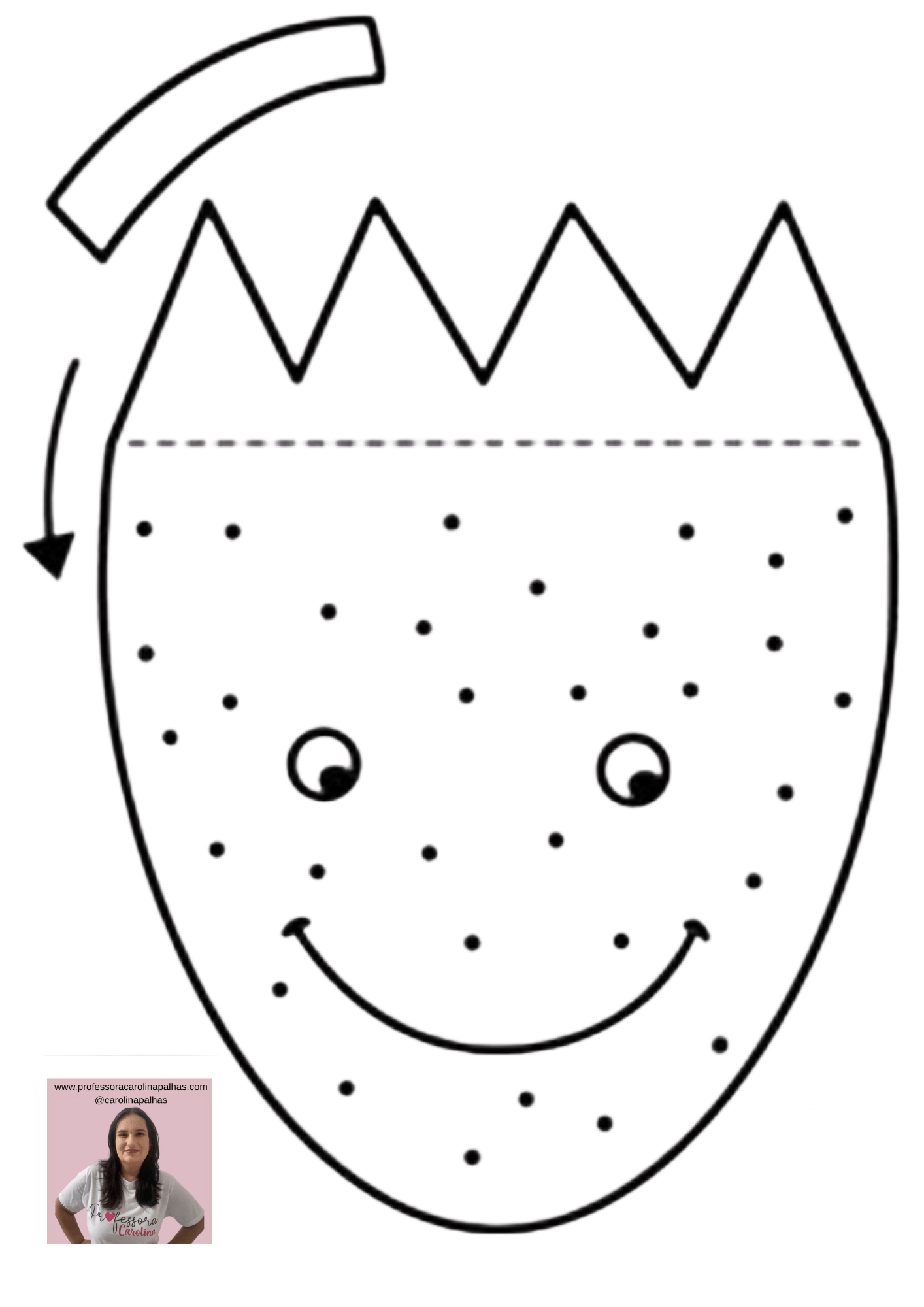 Objetivo: Desenvolver coordenação motora, criatividade e concentração. Como fazer: A criança colore o morango, dobra e decora com rostinho. Habilidades BNCC: EI02CG04, EI03CG01 Material usado: papel Colibri