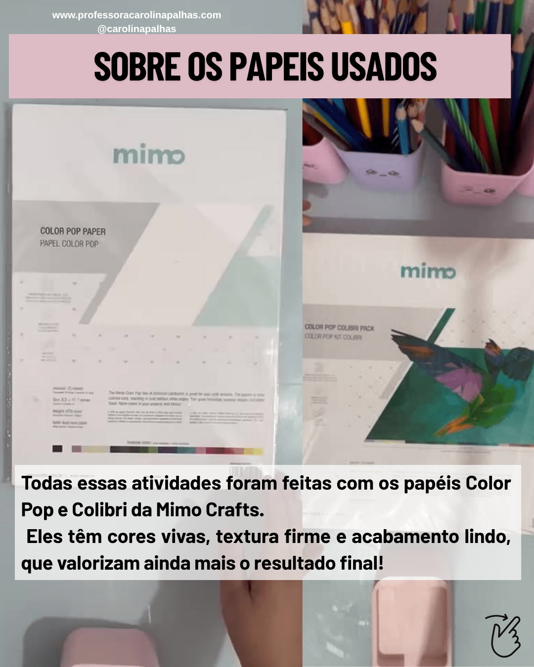 Com a ajuda dos materiais certos, como os papéis da Mimo Crafts, tudo fica ainda mais bonito e funcional. Experimente essas propostas, adapte para sua realidade e transforme pequenos temas em grandes aprendizados!