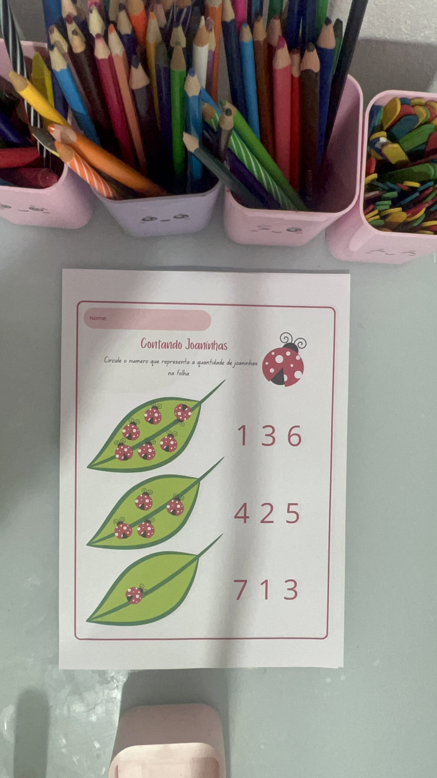 Aumente a quantidade de joaninhas até 10 e proponha que escrevam o número ao invés de apenas circular.