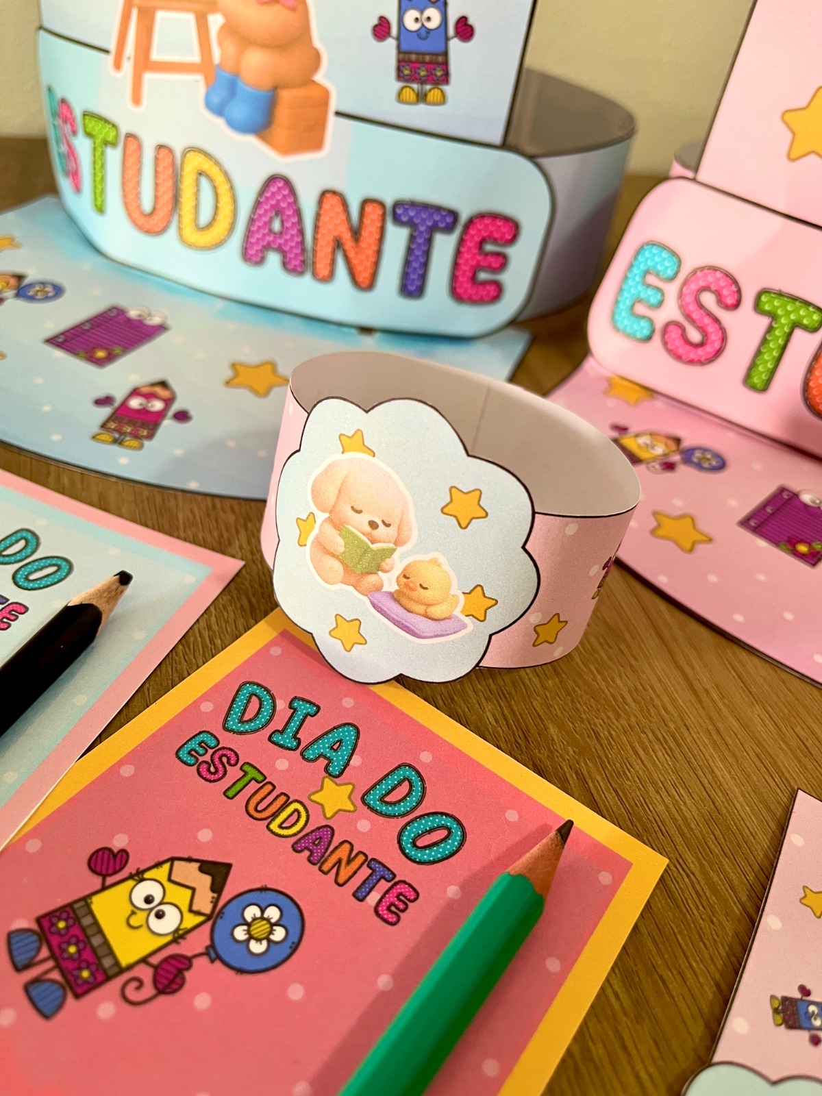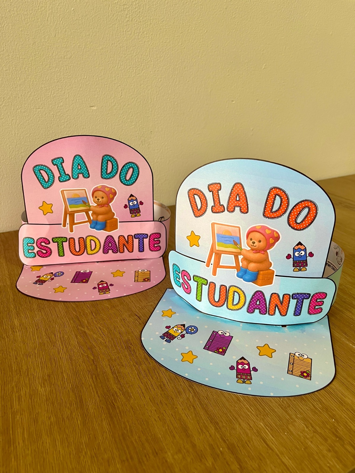 - Coroa “Dia do Estudante” (modelos azul e rosa): Para as crianças se sentirem especiais e celebrarem em grande estilo.