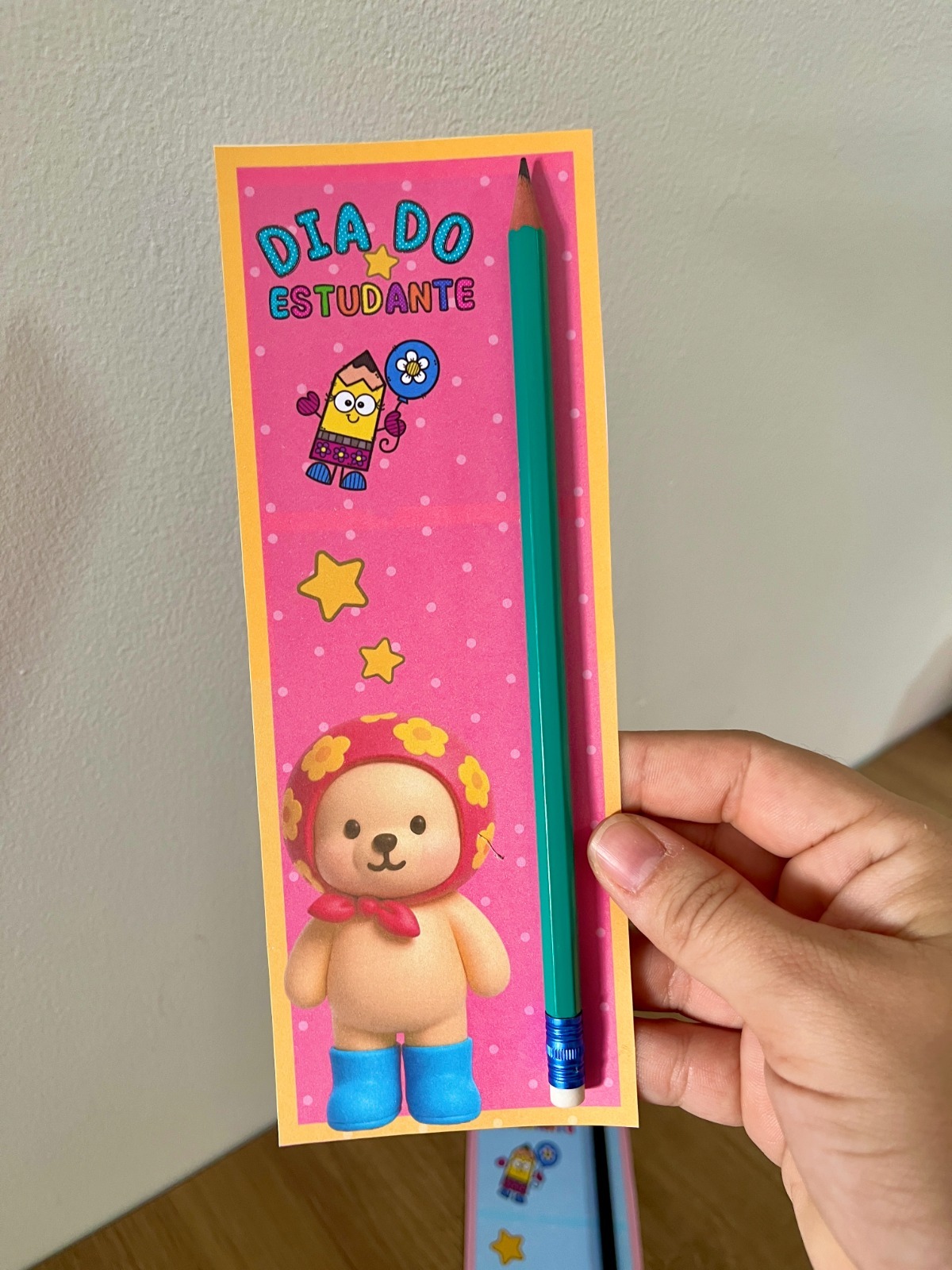 - As crianças podem colorir o fundo do cartão e ganhar o lápis personalizado.
