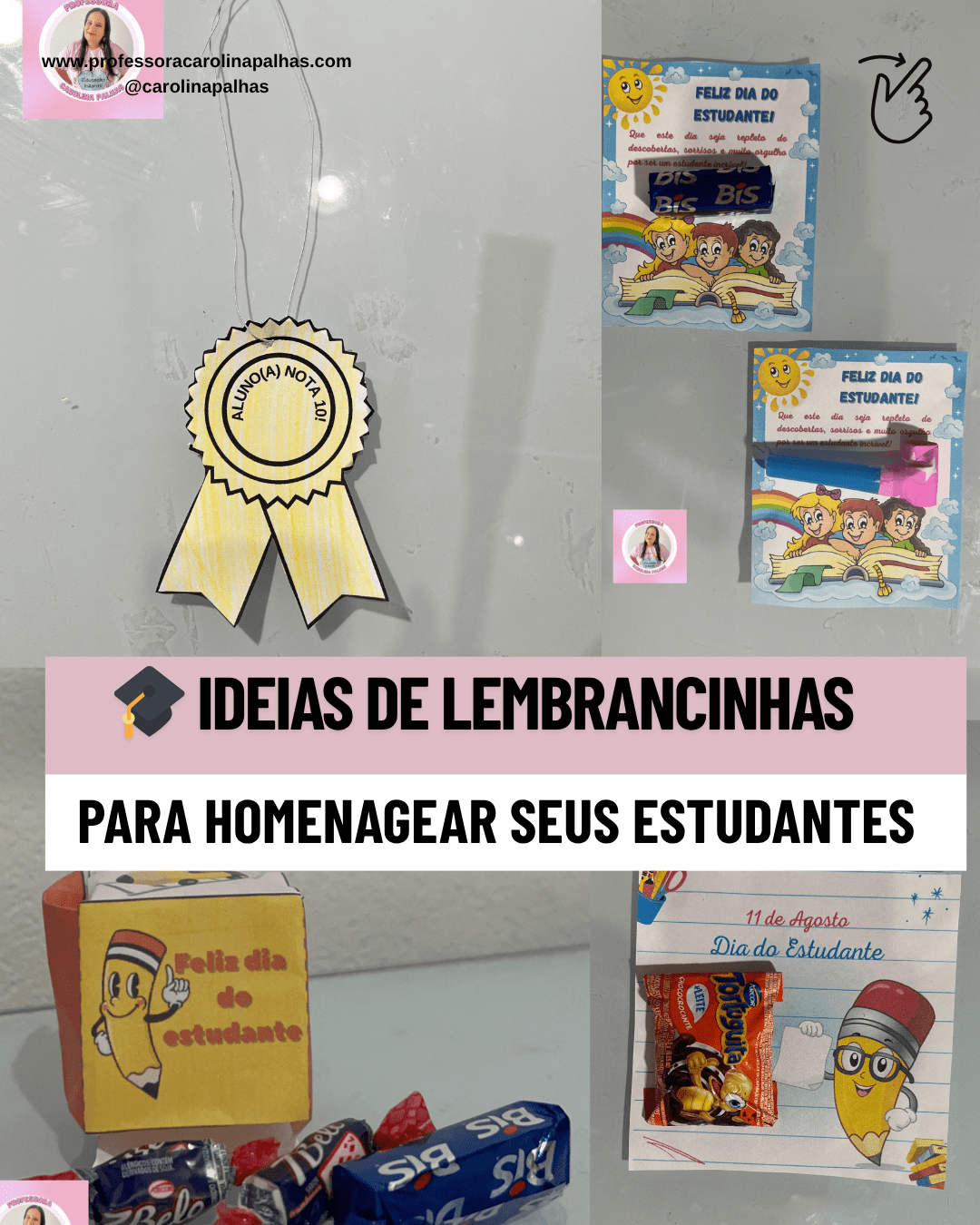 Palavras-chave: ideias de lembrancinhas, lembrancinhas criativas, dia do estudante, atividades para educação infantil, educação infantil, lembrança para estudantes, homenagem para alunos, lembrancinha simples, presente para alunos, professoras criativas, Carolina Palhas, lembrancinhas pedagógicas, lembrancinhas personalizadas, criatividade na educação, lembrancinhas com papel, moldes gratuitos, blog de professora, recursos pedagógicos, lembranças escolares