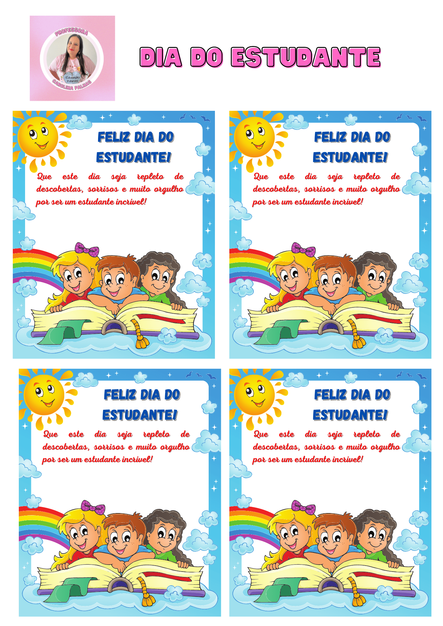 “Feliz Dia do Estudante! Que este dia seja repleto de descobertas, sorrisos e muito orgulho por ser um estudante incrível!”