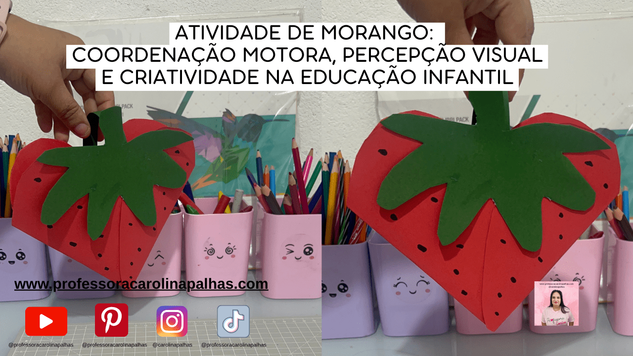 Palavras-chave: atividade com moranguinho, artesanato morango, educação infantil, coordenação motora, atividades com frutas, frutas na educação, criatividade infantil, atividade com EVA, morango em 3D, projeto frutas, atividade primavera, dica pedagógica, professora Carolina Palhas, ideias criativas educação infantil
