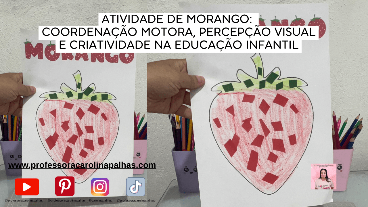 Palavras-chave: atividade infantil, morango, coordenação motora fina, educação infantil, recorte e colagem, atividades com frutas, atividades pedagógicas, atividades com papel, colagem com papel, atividades coloridas, aprendizado lúdico, artes na educação infantil, atividades criativas, desenvolvimento infantil, BNCC, habilidades manuais, atividades temáticas, primavera, frutas na educação infantil