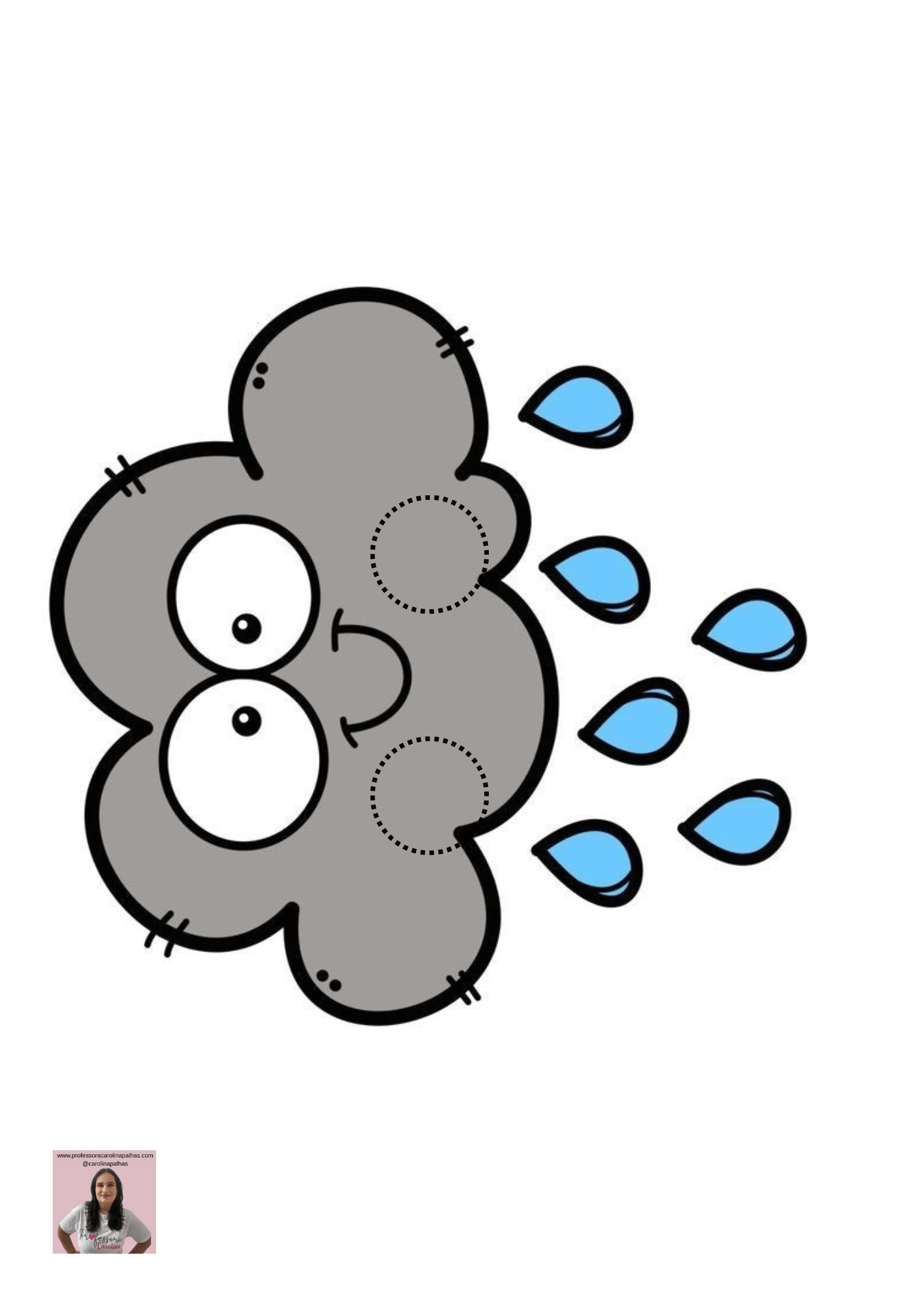 • A criança se desenha segurando um guarda-chuva e finaliza colando gotinhas de papel crepom.