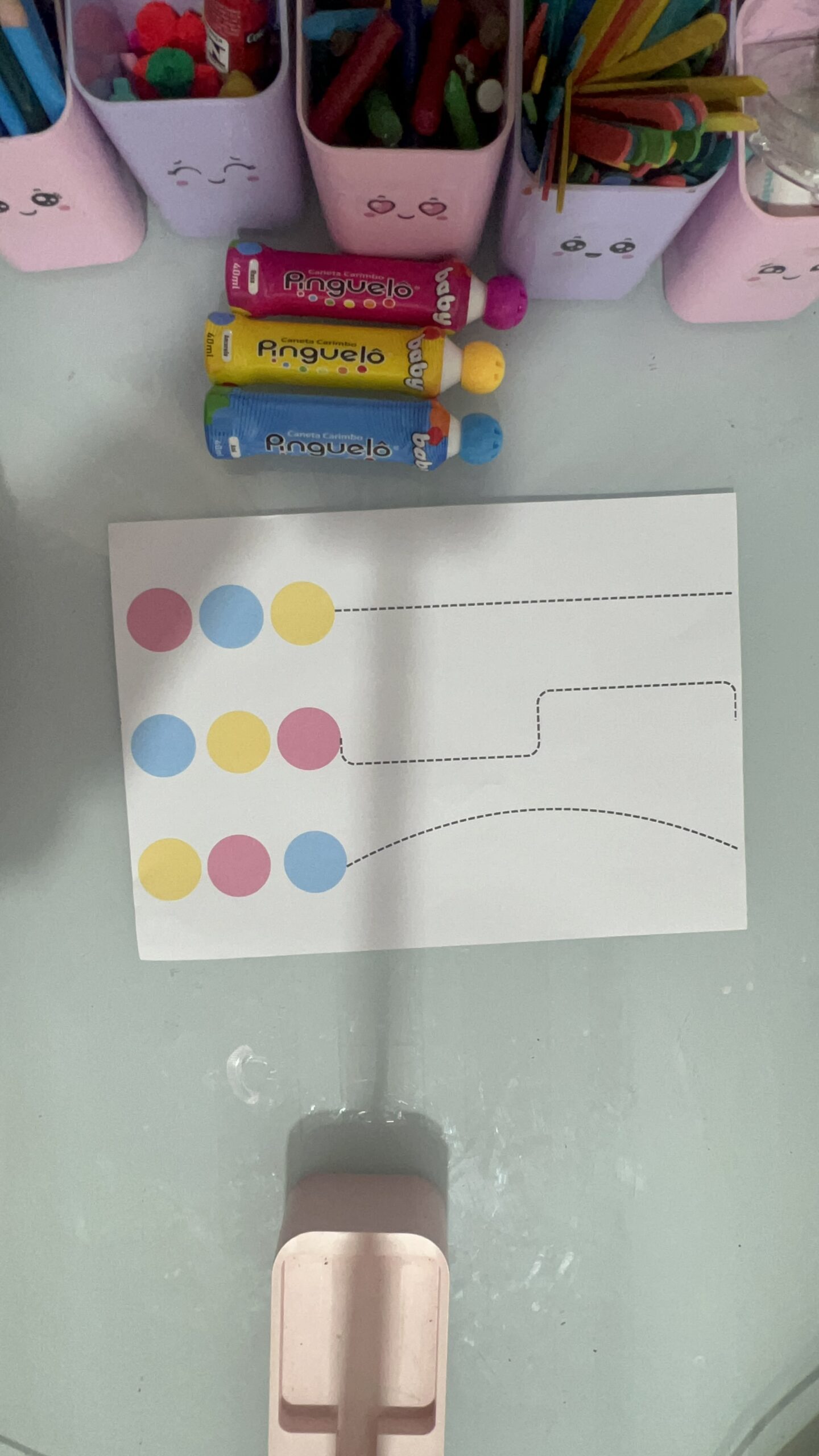 Explique que cada bolinha colorida corresponde ao caminho que deve ser percorrido com a caneta.