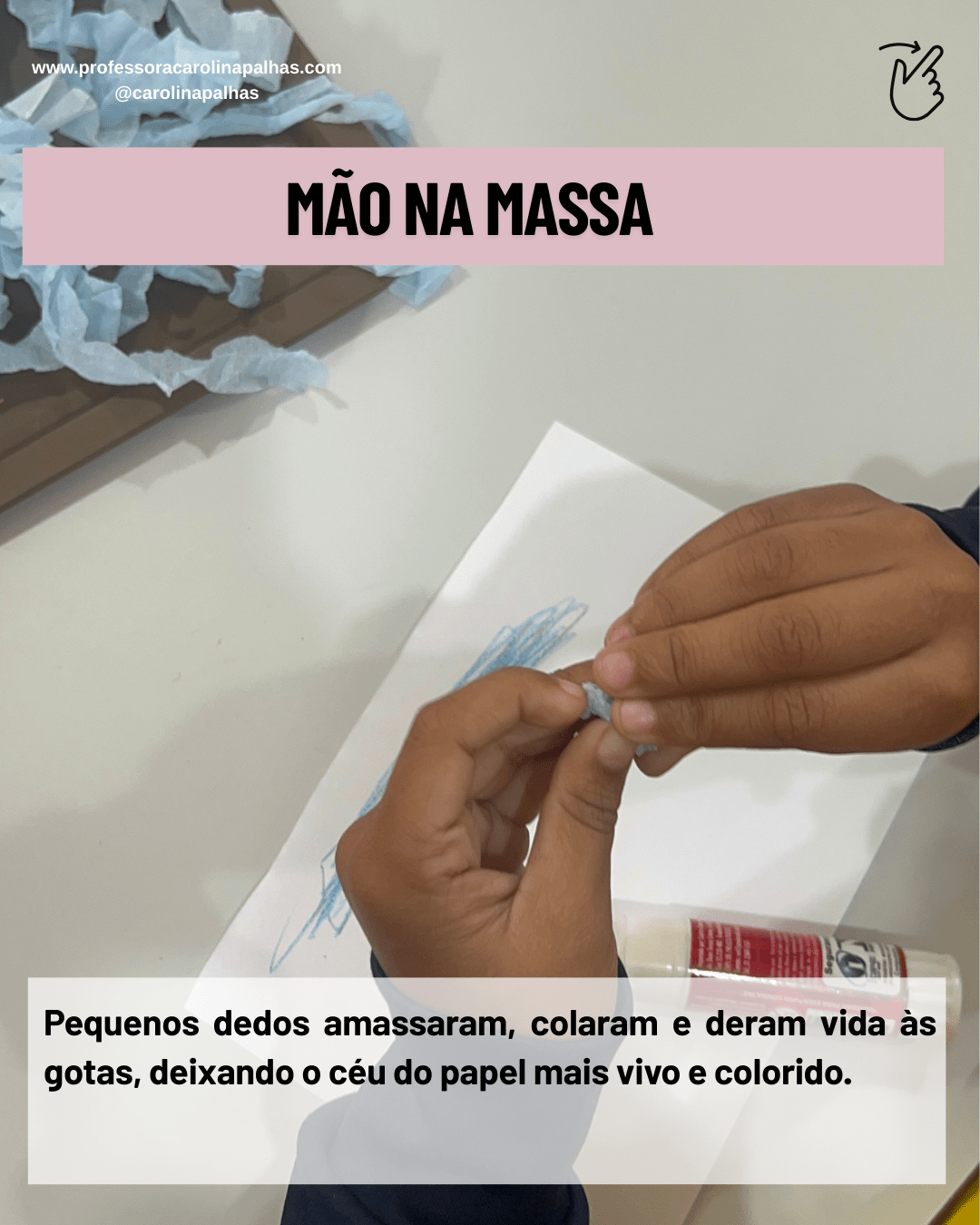 3️⃣ Colagem das Gotas – Papel crepom azul. (BNCC: EI03CO01)