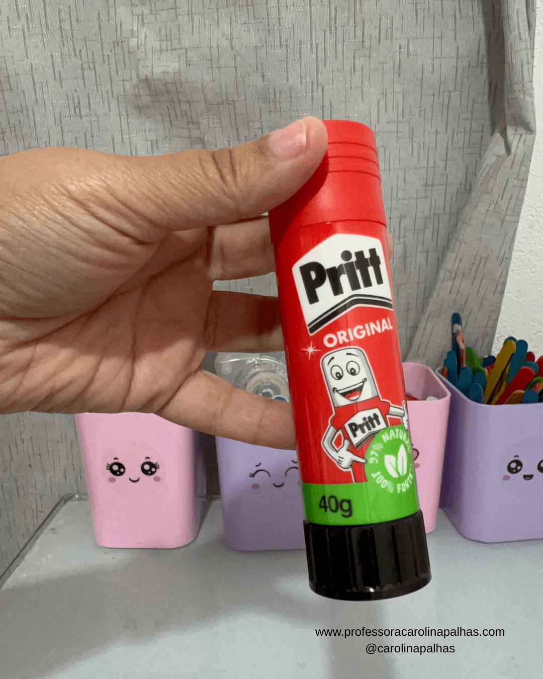 • Cola em bastão Pritt – prática, segura e sem sujeira.